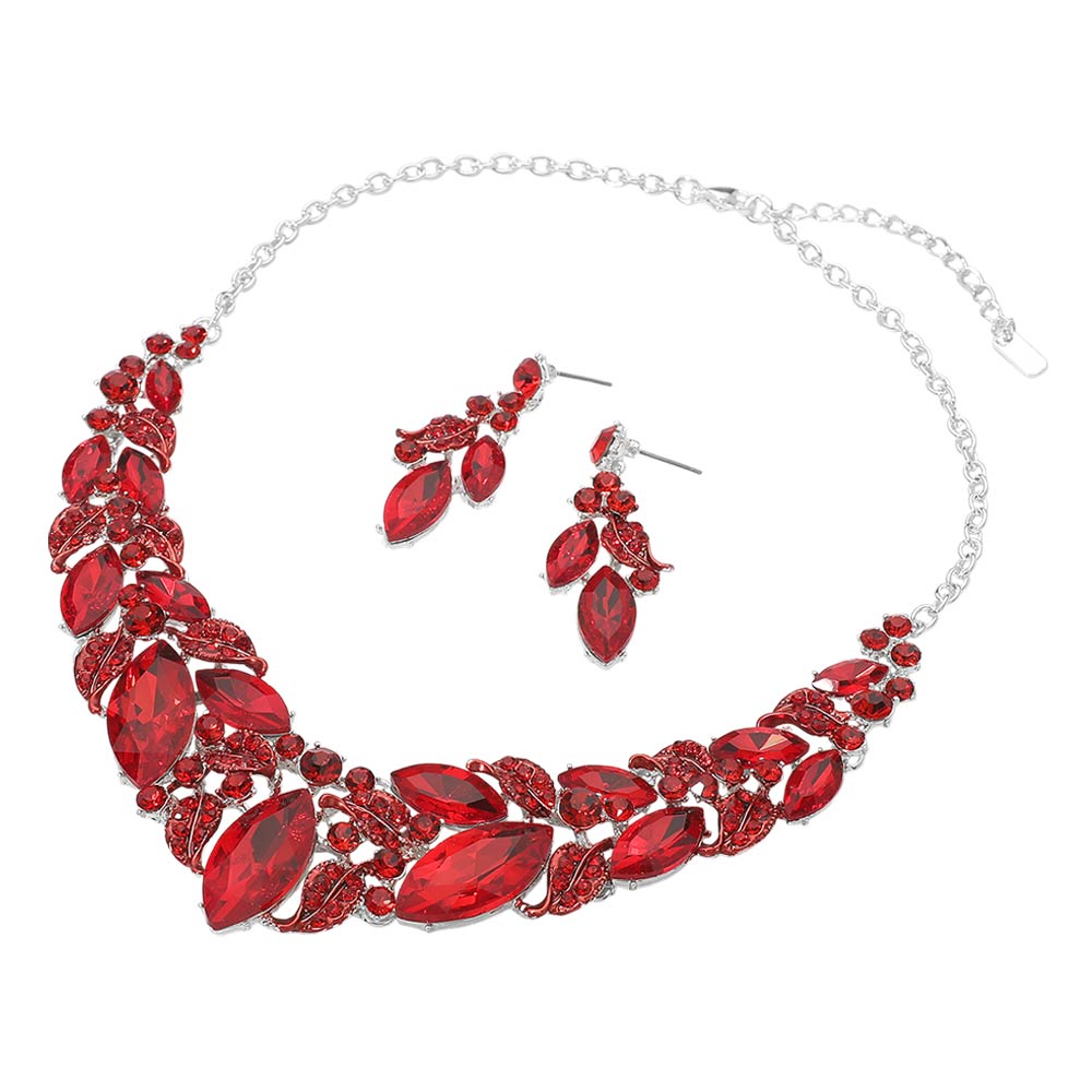 Marquise Stone Cluster Leaf Embellished Evening Necklace