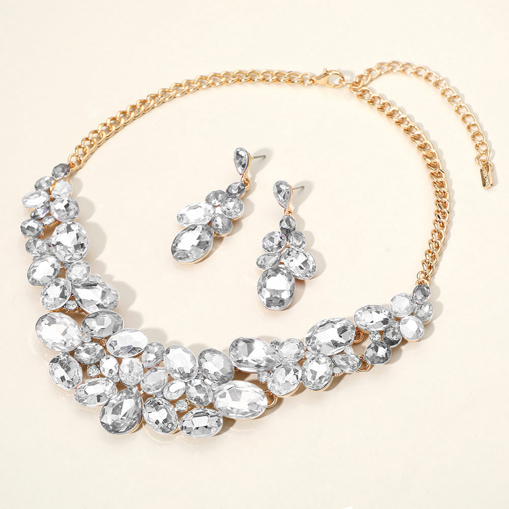 Crystal Rhinestone Pave Collar Necklace Clip On Earring Set
