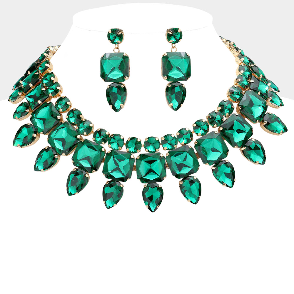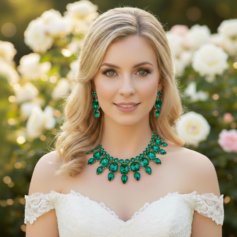 • Stunning statement jewelry set featuring a dramatic necklace and matching earrings adorned with large gemstones. Perfect for special occasions, parties, or evening events, adding glamour and sophistication to any outfit. A show-stopping accessory for an elegant, confident look.