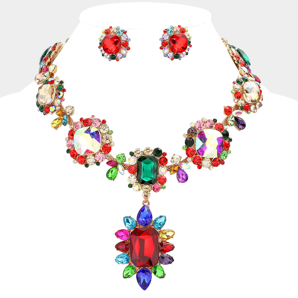 • Elegant statement necklace and earring set featuring brilliant crystal accents in a bold design. Perfect for weddings, formal events, or evening wear, this dazzling jewelry set adds glamour and sophistication to any outfit with its radiant sparkle and timeless appeal.