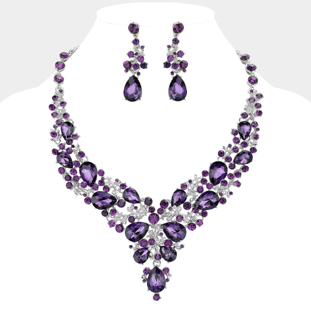 Teardrop Center Marquise Stone Cluster Evening Necklace