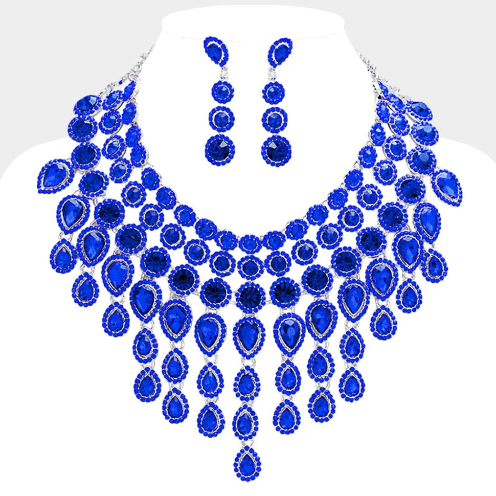 Round Teardrop Stone Cluster Evening Bib Necklace