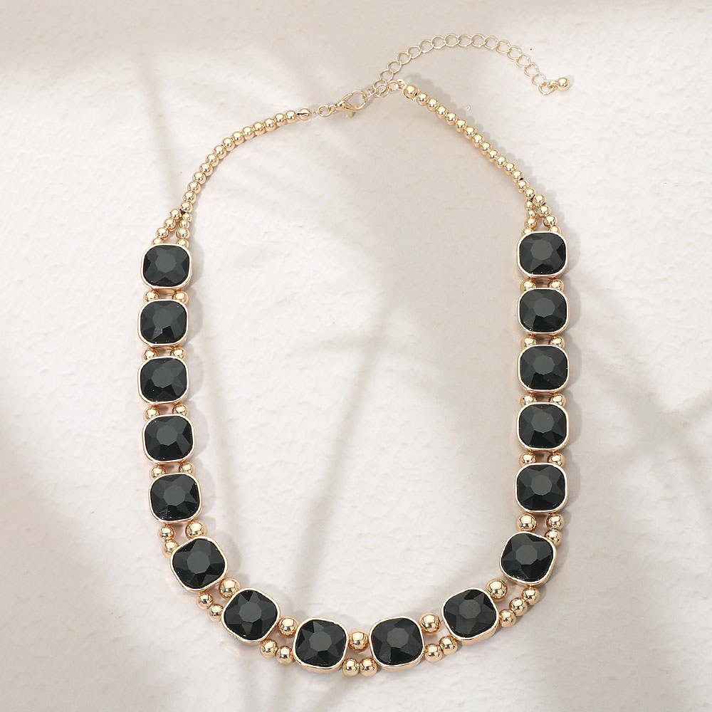 • Elegant linked necklace featuring evenly spaced square-cut stones framed by polished metal accents. Designed with an adjustable chain for versatile styling, this piece adds refined sparkle to everyday looks, special occasions, and layered jewelry collections, making it a timeless addition for retail displays and gifting.