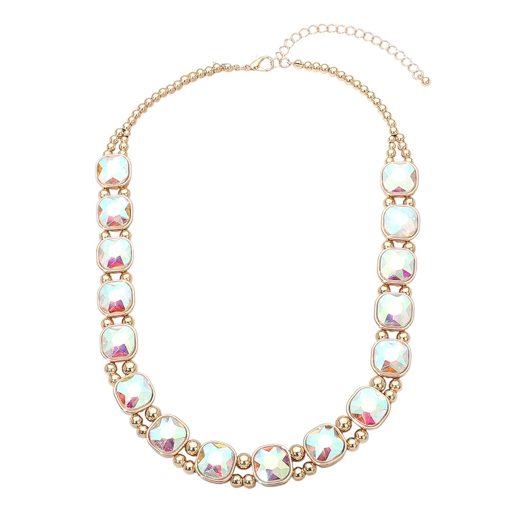 Square Faceted Stone Bezel Link Evening Necklace Square Faceted Stone Bezel Link Evening Necklace Square Faceted Stone Bezel Link Evening Necklace