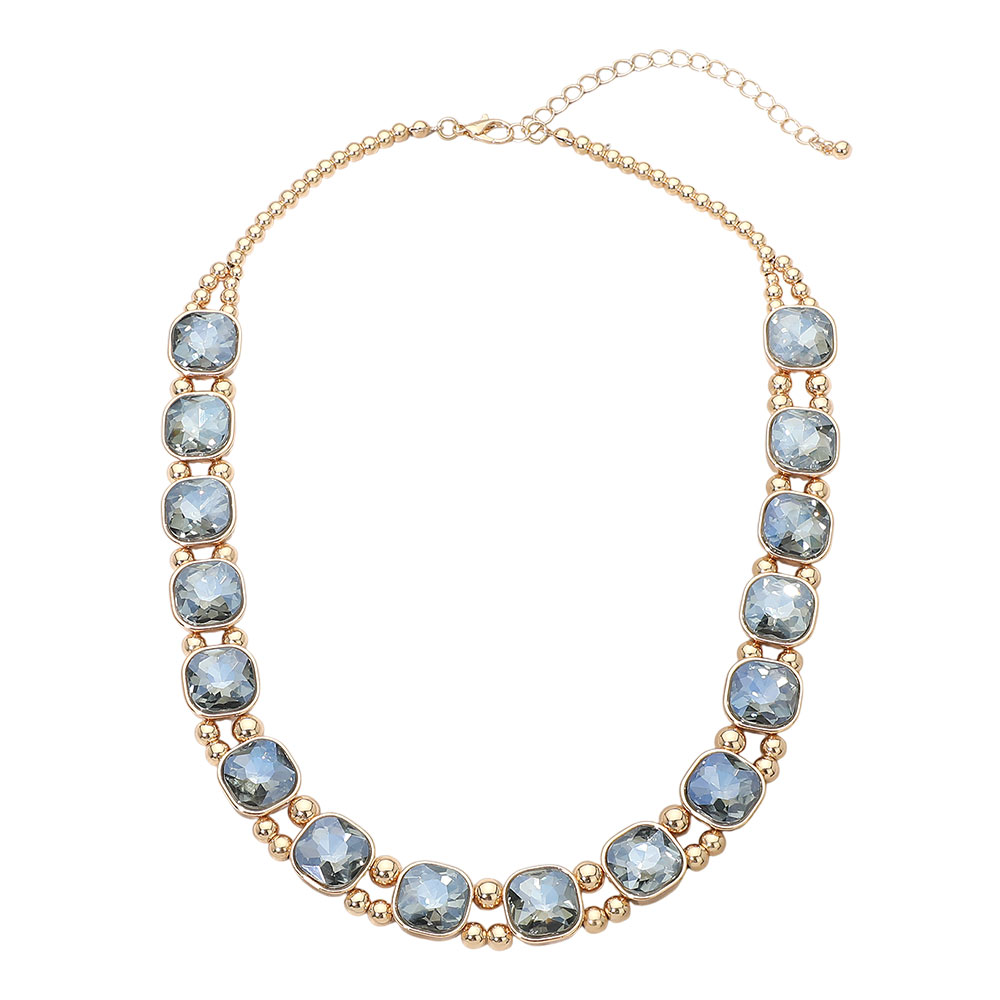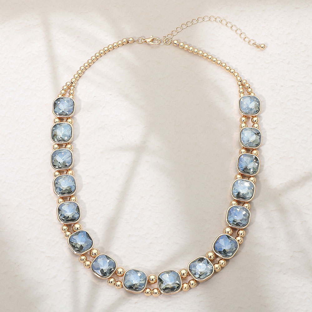 • Elegant linked necklace featuring evenly spaced square-cut stones framed by polished metal accents. Designed with an adjustable chain for versatile styling, this piece adds refined sparkle to everyday looks, special occasions, and layered jewelry collections, making it a timeless addition for retail displays and gifting.