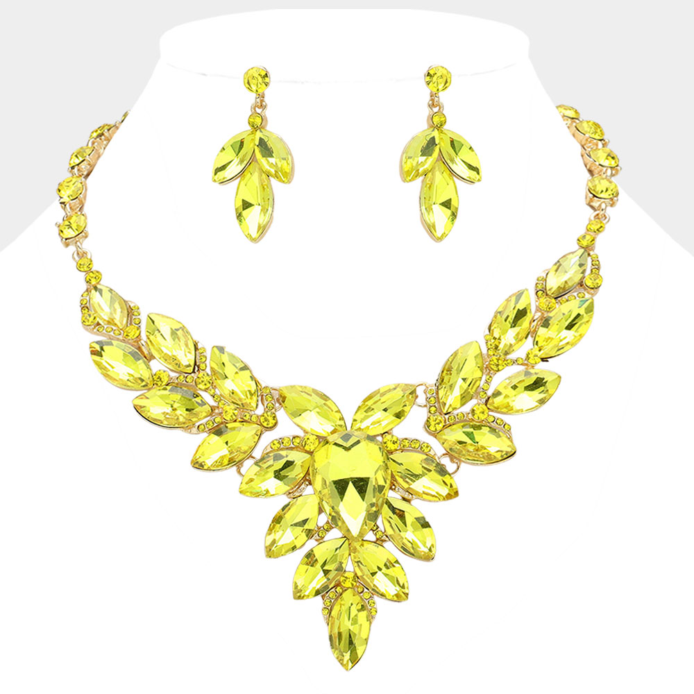 Teardrop Center Marquise Stone Cluster Evening Necklace