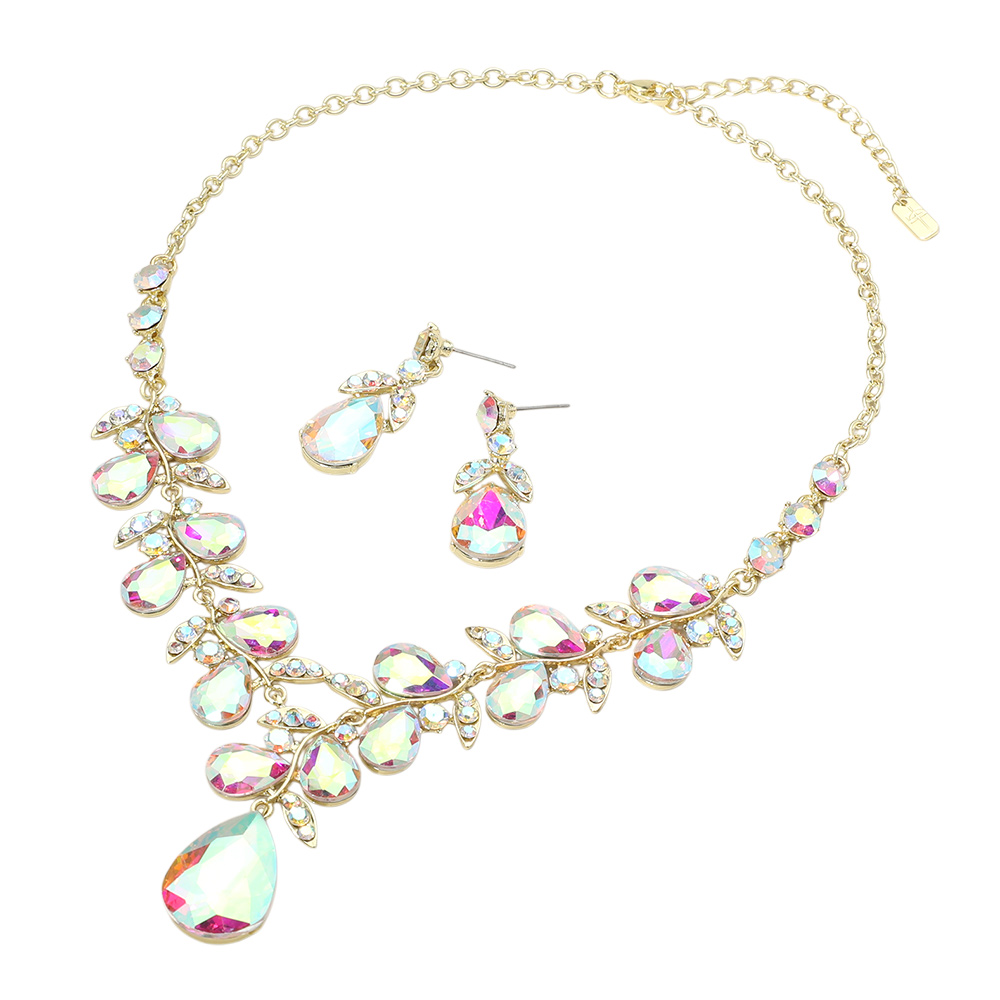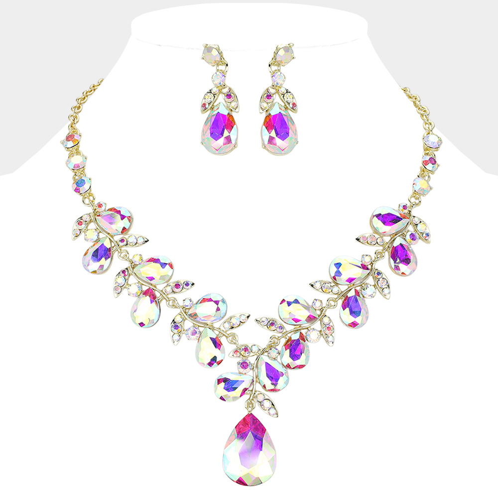 Teardrop Cluster Embellished Pendant Evening Necklace