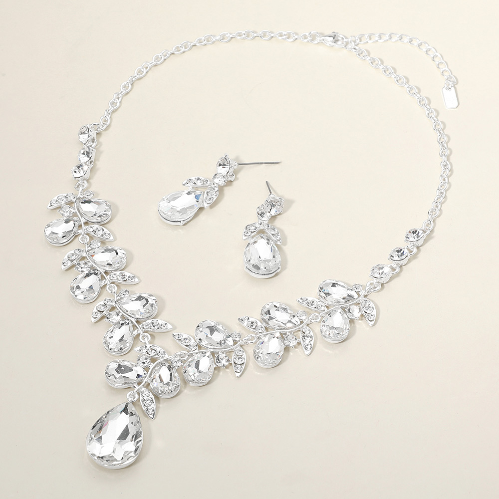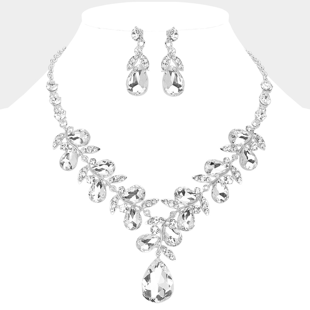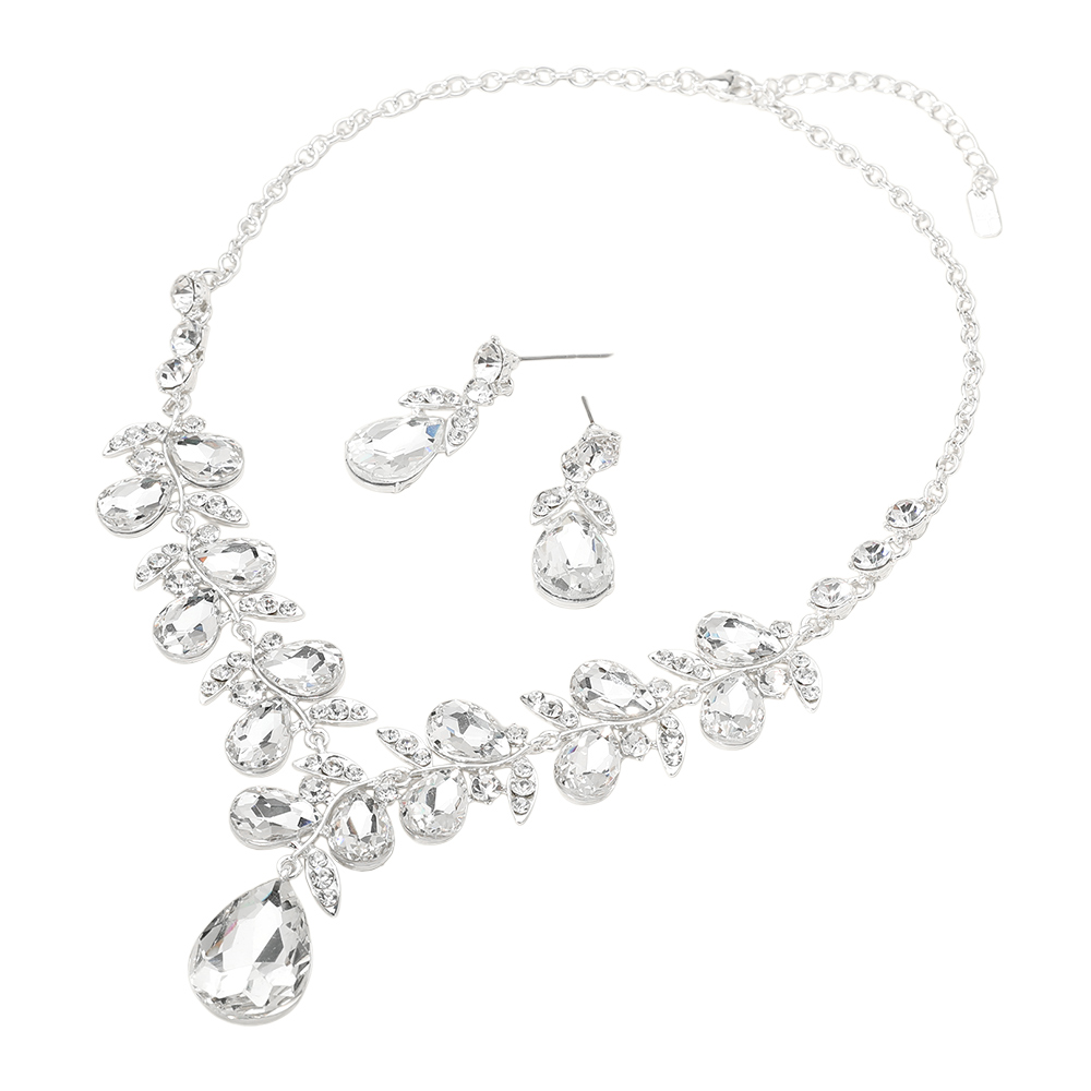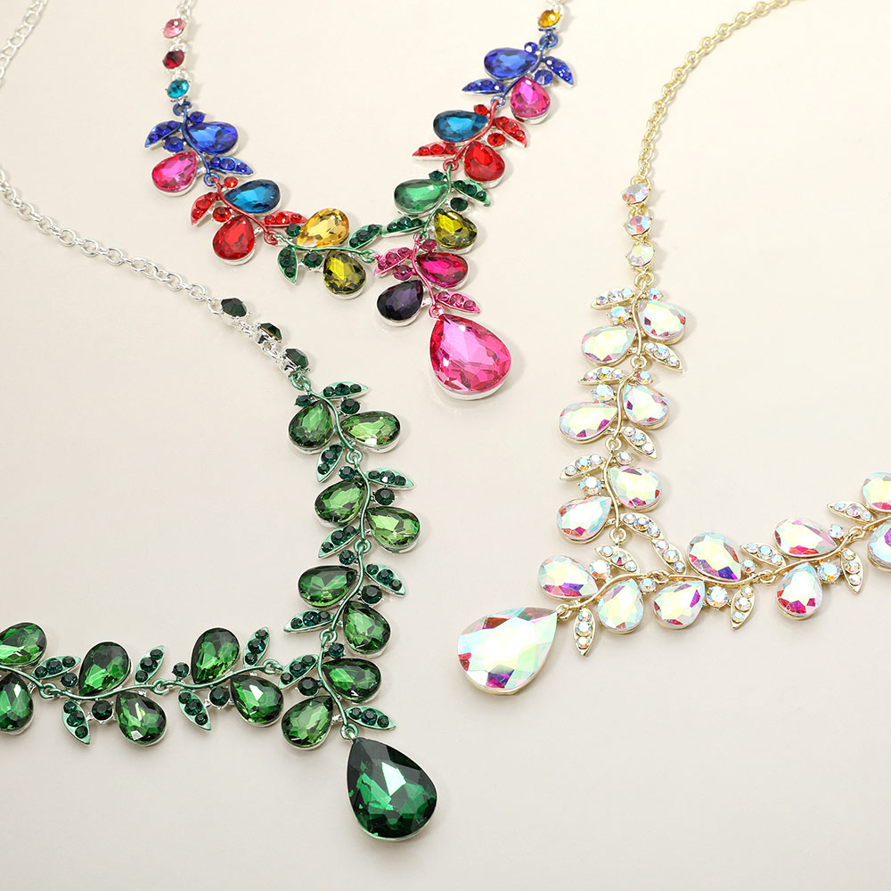 Teardrop Cluster Embellished Pendant Evening Necklace