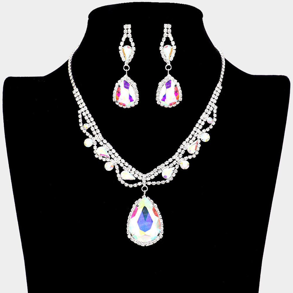 Teardrop Crystal Rhinestone Collar Evening Necklace