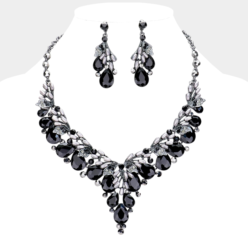 Teardrop Glass Crystal Pearl Vine Evening Necklace