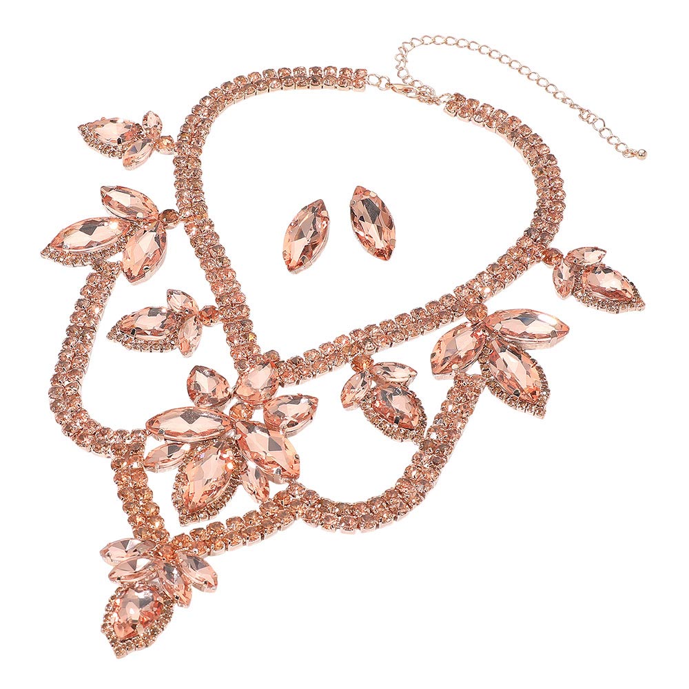 • Elegant statement bib necklace and earring set featuring sparkling crystal leaf clusters and layered detailing for a glamorous, eye-catching finish. Perfect for evening events, formals, weddings, and special occasions, adding radiant shine and dramatic sophistication to any standout look.