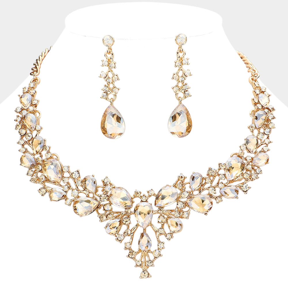 Teardrop Stone Cluster Embellished Rhinestone Paved Leaf Vine Necklace
