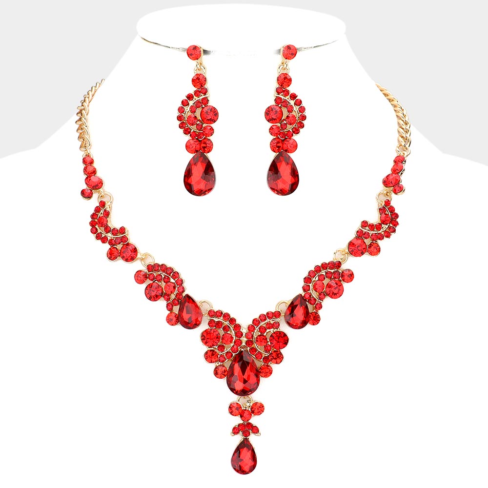 Teardrop Stone Accented Evening Necklace