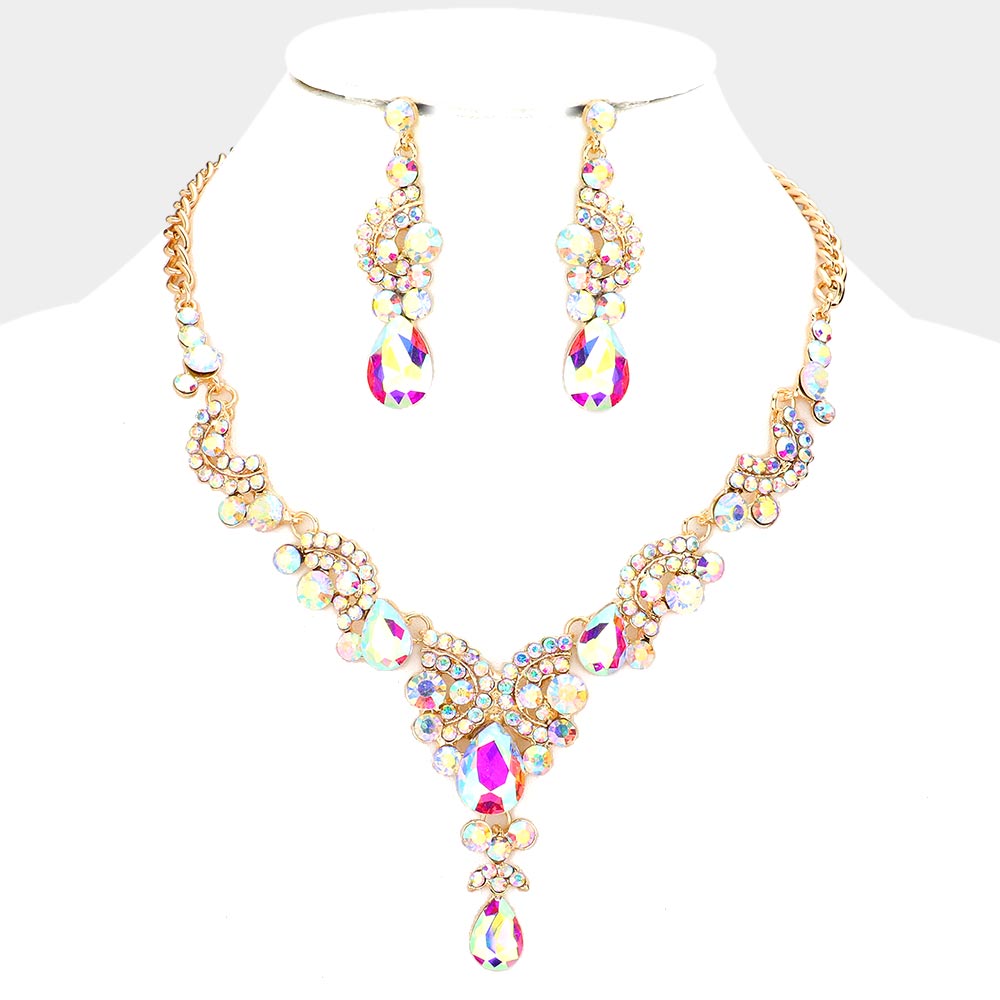 Teardrop Stone Pointed Rhinestone Paved Dangle Evening Earrings