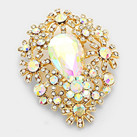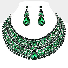 Teardrop Stone Accented Marquise Round Stone Embellished Chunky Collar Evening Necklace
