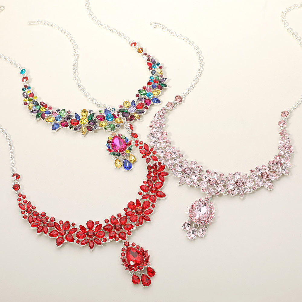 Teardrop Stone Cluster Embellished Statement Evening Necklace