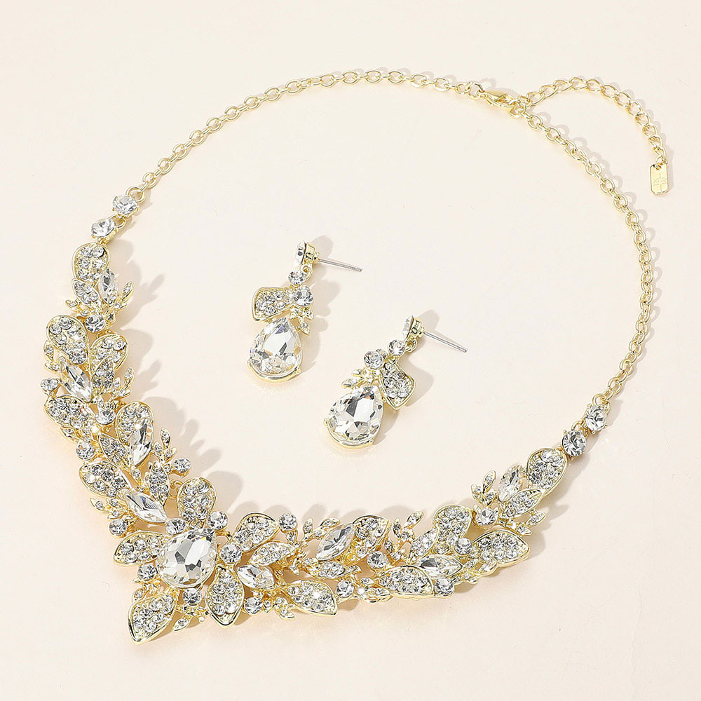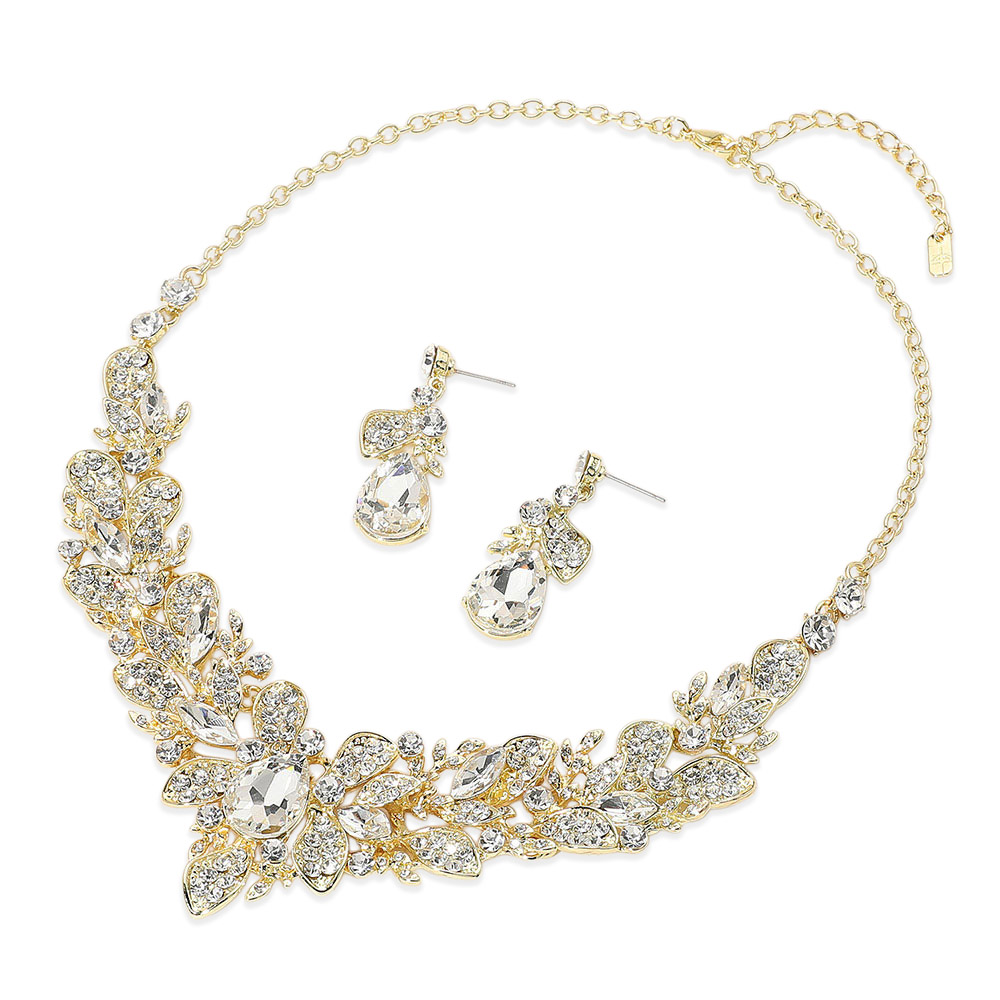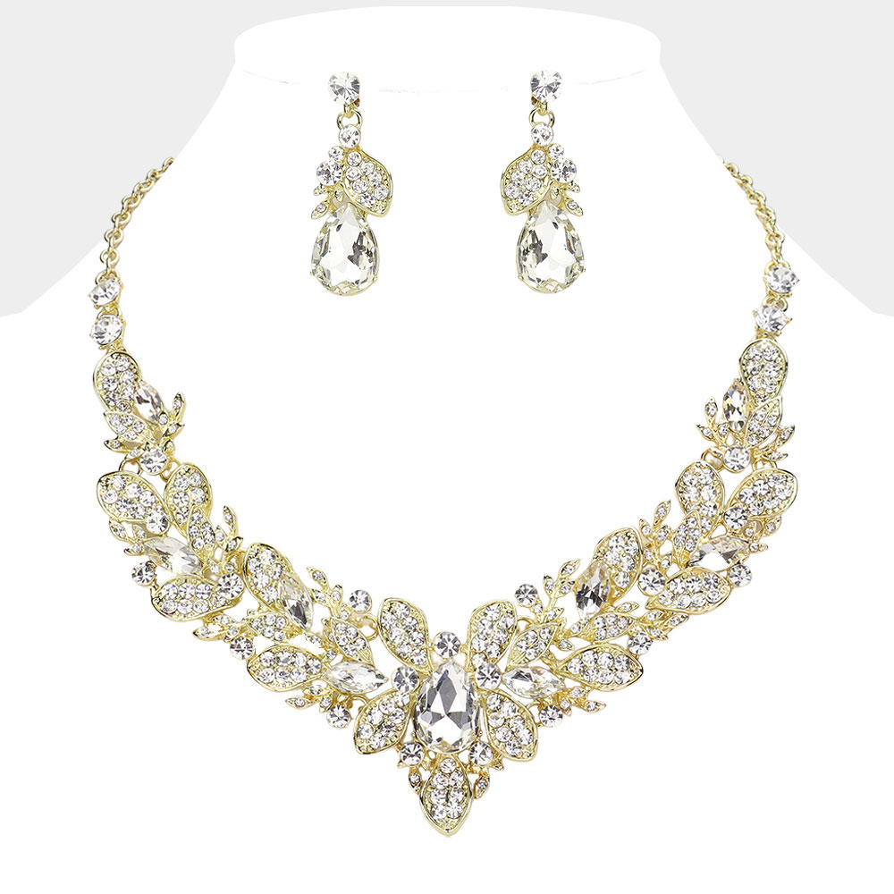 Teardrop Stone Cluster Pointed Leaf Vine Evening Necklace