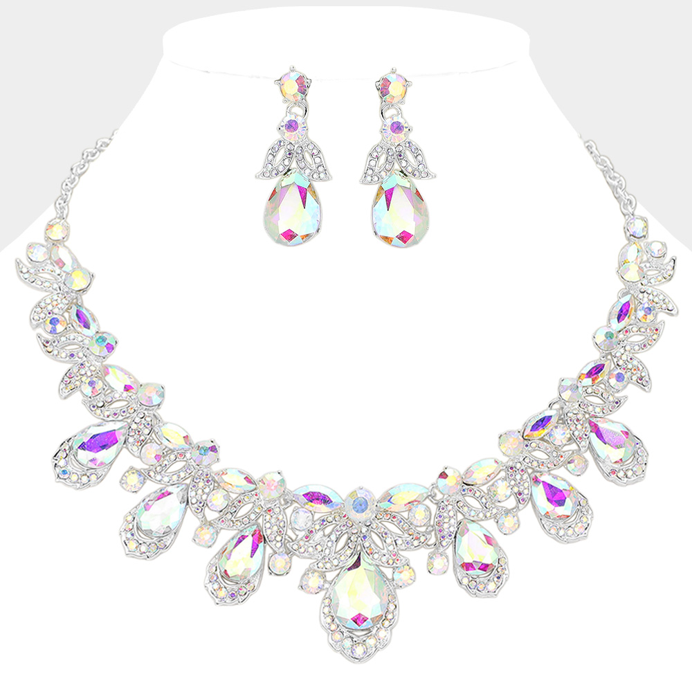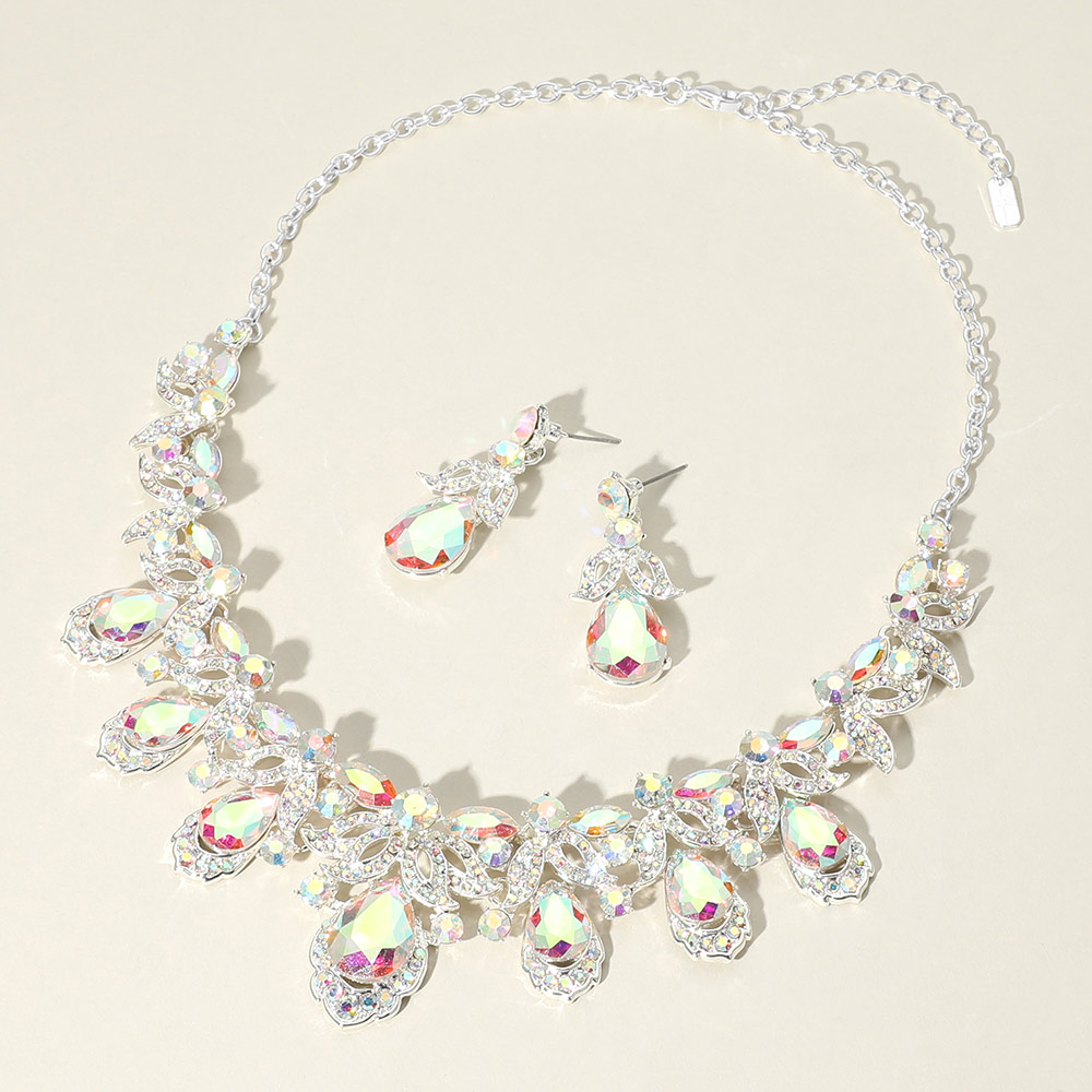 Teardrop Stone Cluster Pointed Marquise Round Stone Embellished Collar Evening Necklace