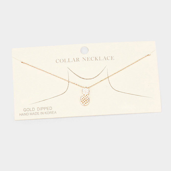 White Gold Dipped Metal Pineapple Pendant Collar Necklace