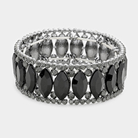 Colored Textured Metal Leaf Motif Stretch Bracelet