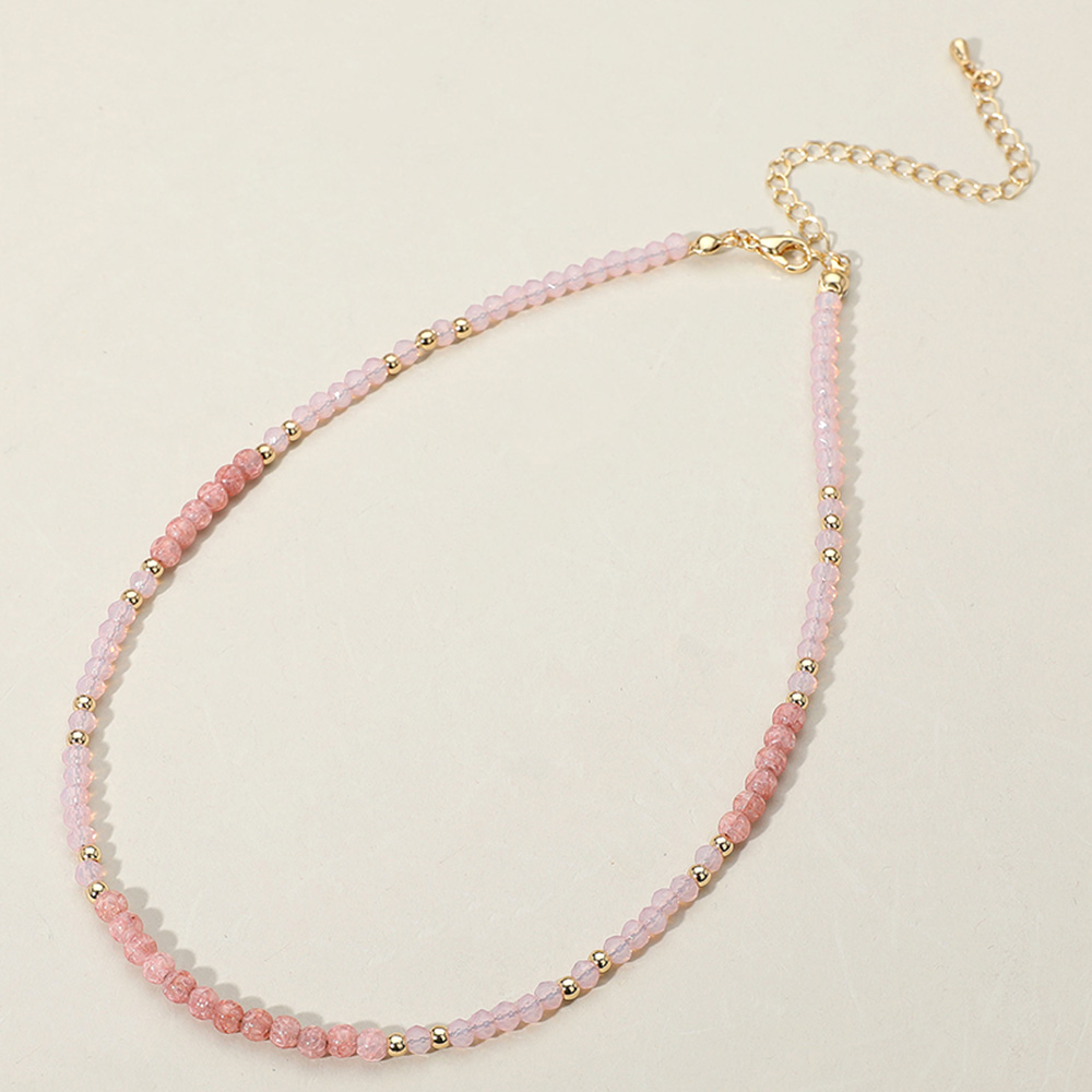 Natural Stone Metal Ball Faceted Beaded Choker Necklace