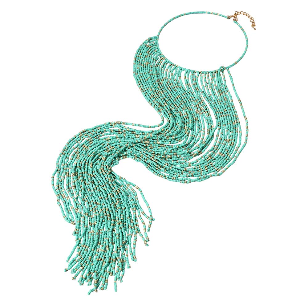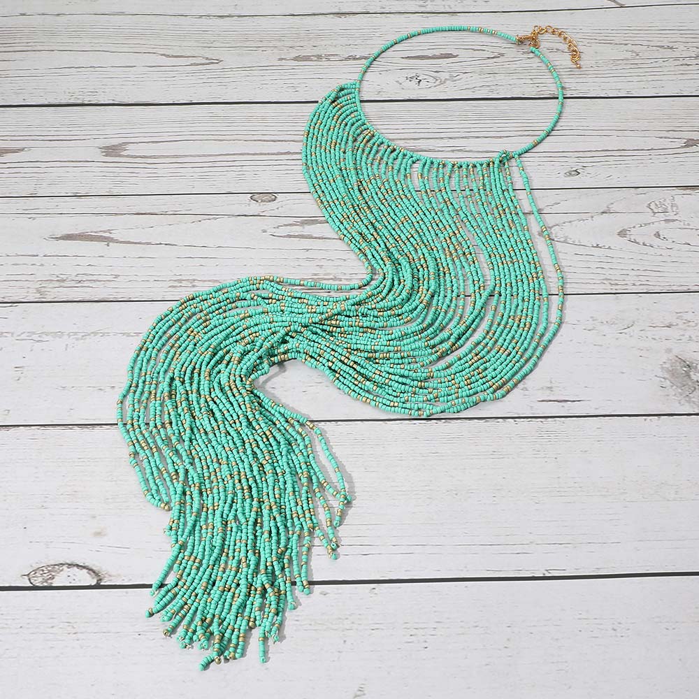 Oversized Seed Beaded Fringe Statement Choker Necklace