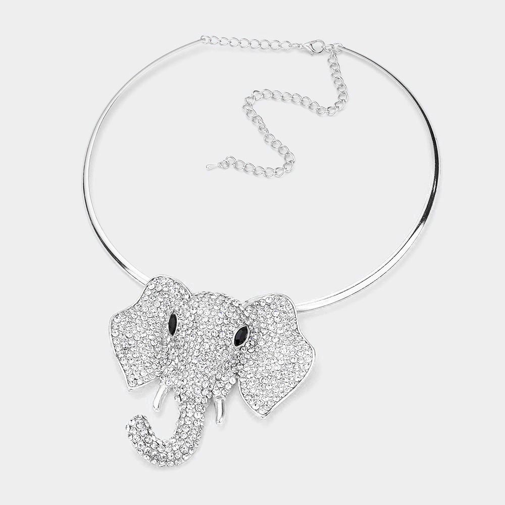 Oval Stone Accented Enamel Elephant Pendant Necklace