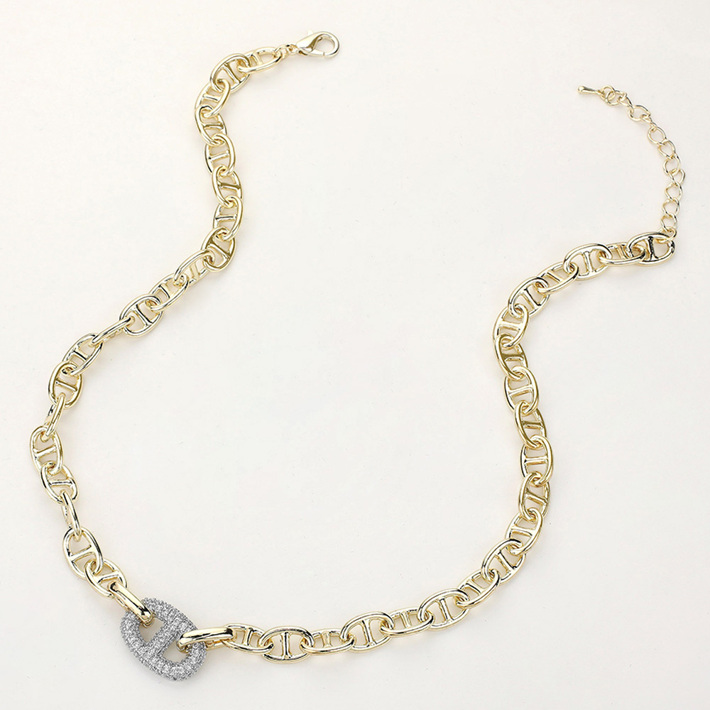 14K Gold Plated CZ Stone Paved Mariner Link Accented Necklace