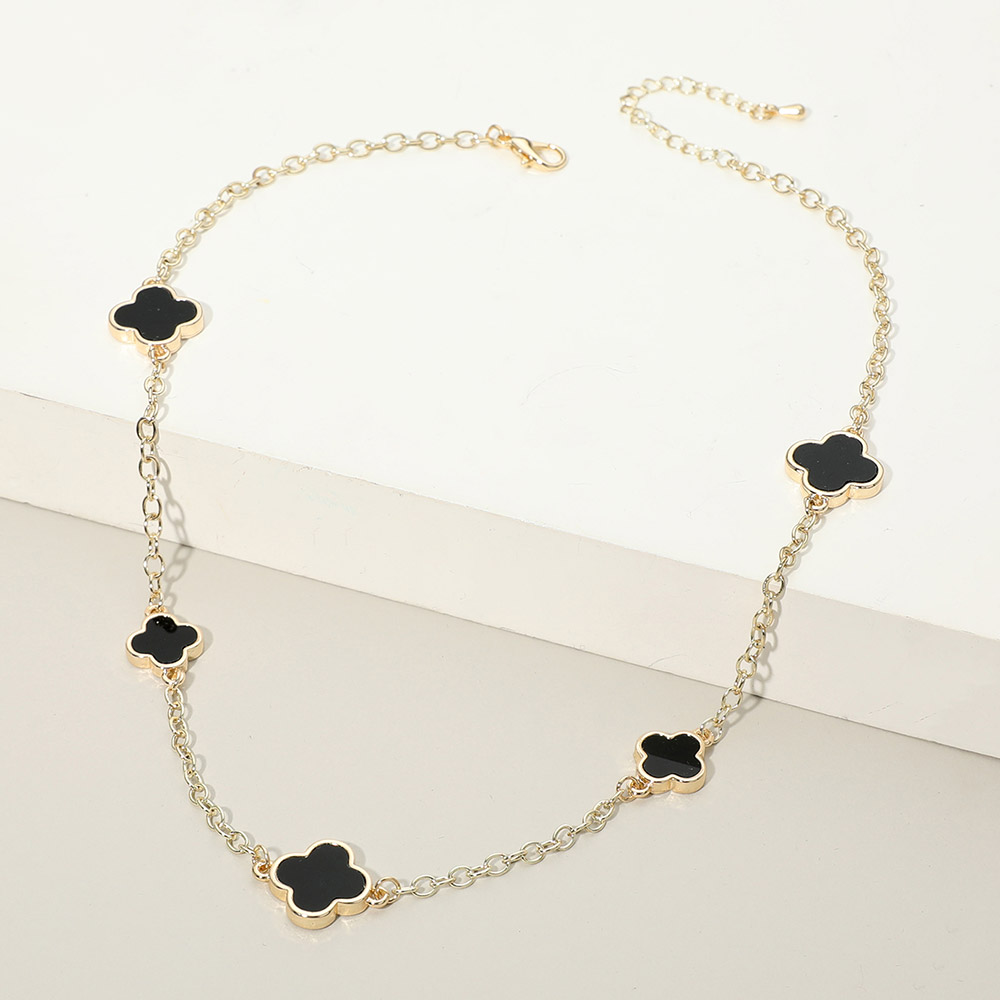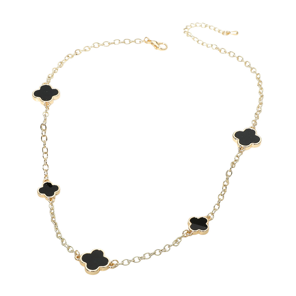 14K Gold Plated Onix Quatrefoil Motif Station Necklace 14K Gold Plated Onix Quatrefoil Motif Station Necklace 14K Gold Plated Onix Quatrefoil Motif Station Necklace 14K Gold Plated Onix Quatrefoil Motif Station Necklace