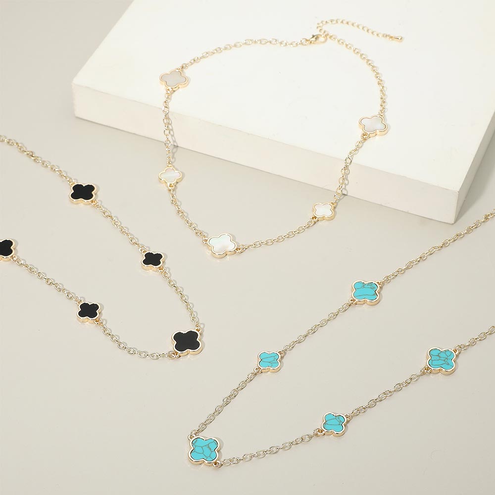 Stone Paved Natural Stone Quatrefoil Station Necklace