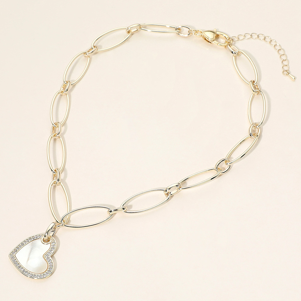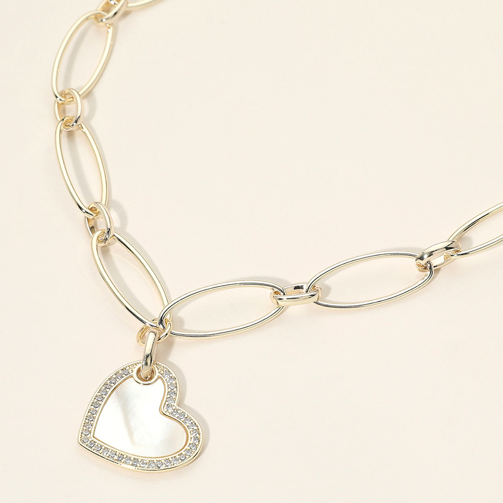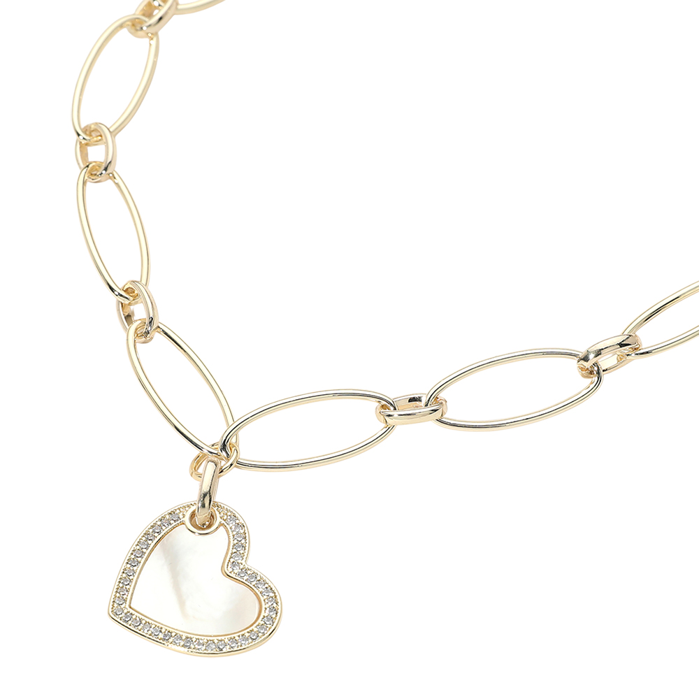Details • Necklace Size : 16" + 2.25" L • Decor Size : 0.4" L • Pendant Size : 0.9" X 1.25" • Chain link necklace featuring a heart charm accented with subtle stone detailing for added shine. Designed for easy layering or standalone wear, this necklace delivers a balanced mix of charm and modern style, making it a versatile choice for everyday looks and gift-ready jewelry assortments. • CZ Cubic Zirconia • Gold Dipped