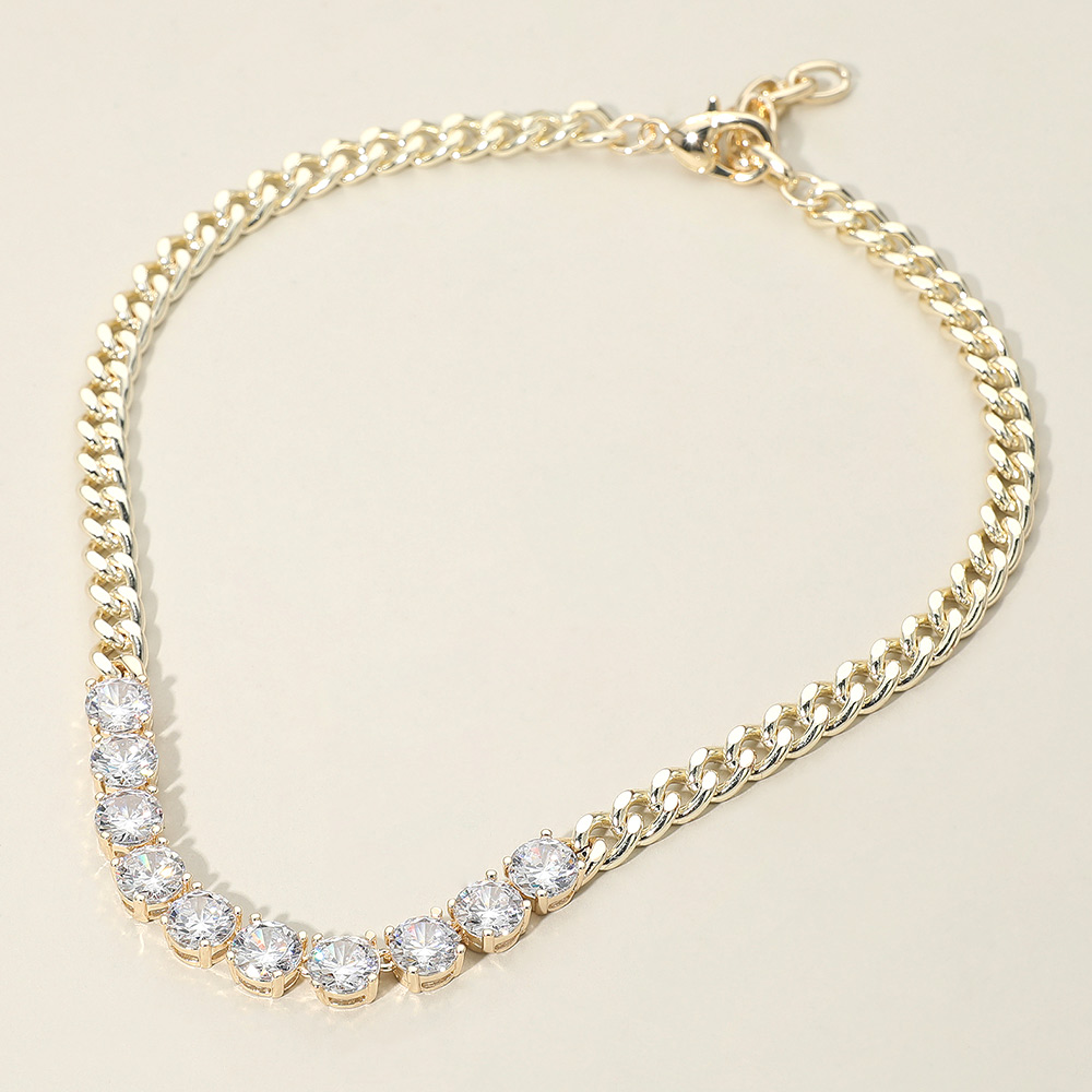 Details • Necklace Size : 17.5" + 2" L • Decor Size : 0.3" L • Elevate your look with this stunning necklace featuring a row of brilliant round-cut stones set along a polished chain. Its timeless sparkle and refined silhouette make it a versatile piece that adds sophistication to both everyday outfits and elegant evening ensembles. • CZ Cubic Zirconia • Gold Dipped