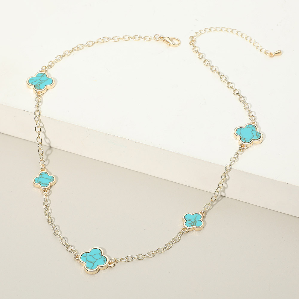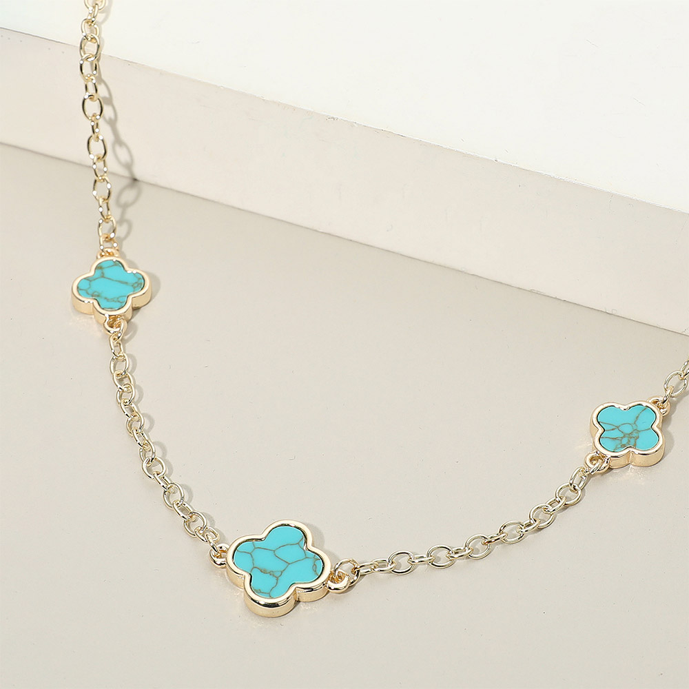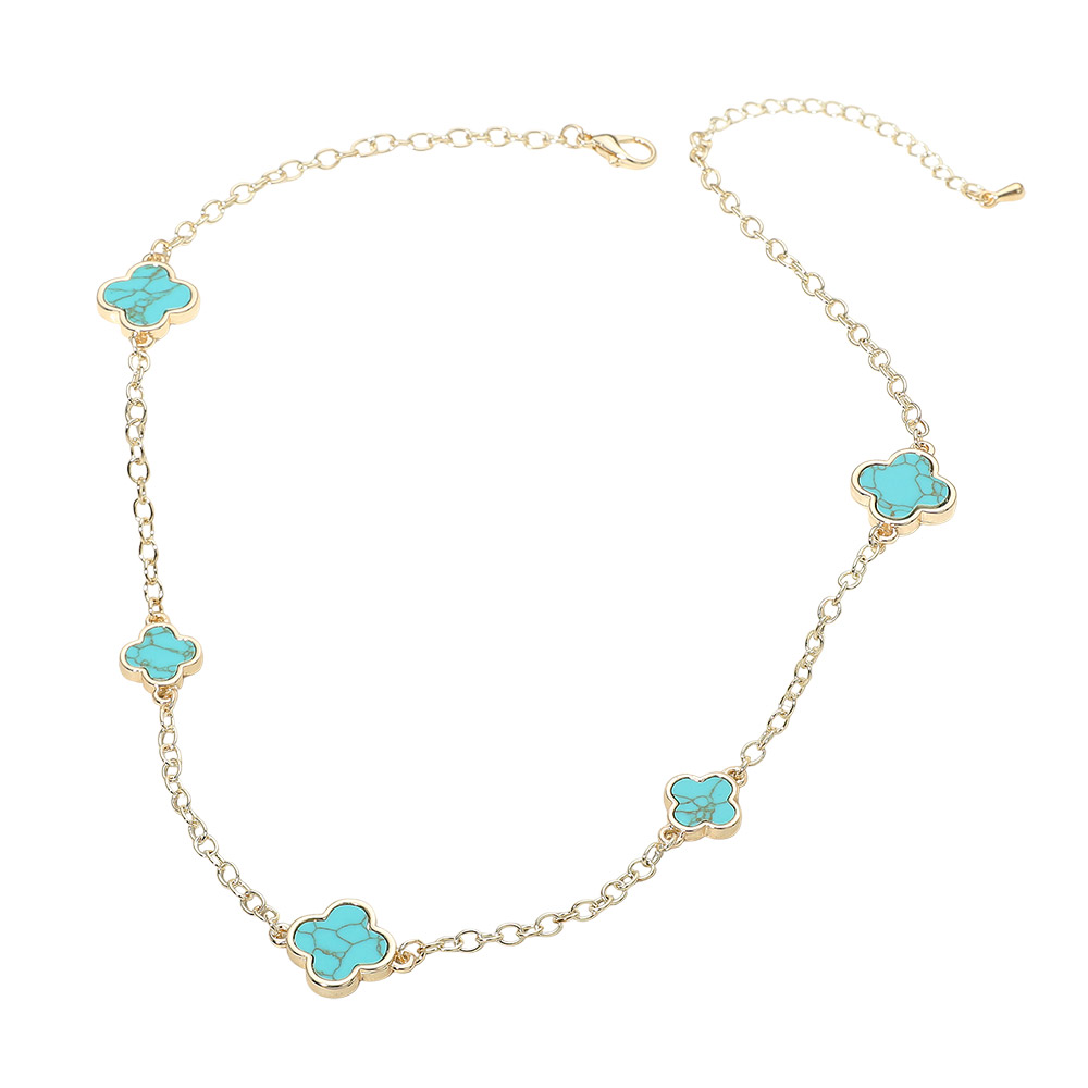 14K Gold Plated Turquoise Quatrefoil Motif Station Necklace 14K Gold Plated Turquoise Quatrefoil Motif Station Necklace 14K Gold Plated Turquoise Quatrefoil Motif Station Necklace 14K Gold Plated Turquoise Quatrefoil Motif Station Necklace