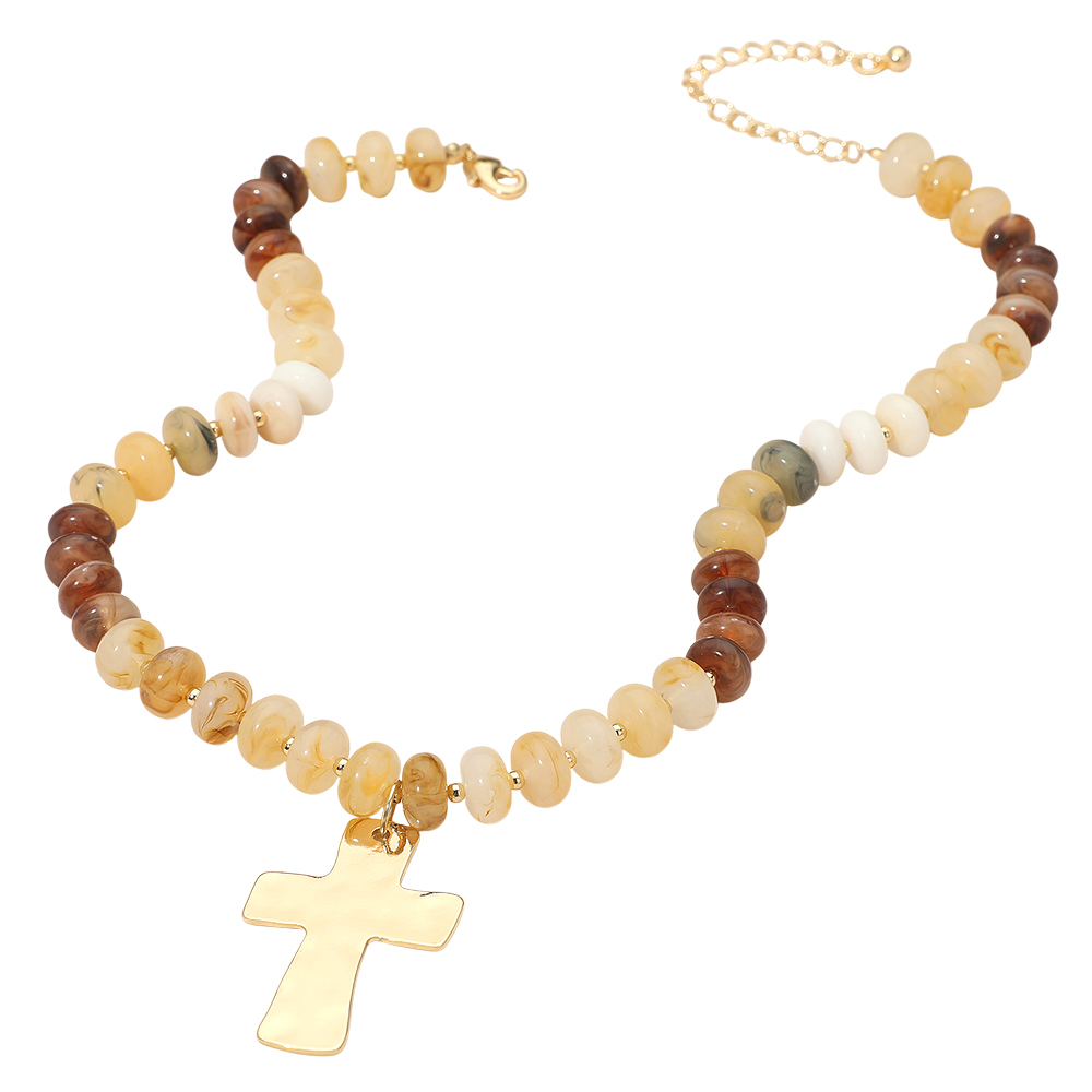 18K Gold Dipped Hammered Cross Plate Pendant Chunky Resin Disc Beaded Necklace 18K Gold Dipped Hammered Cross Plate Pendant Chunky Resin Disc Beaded Necklace