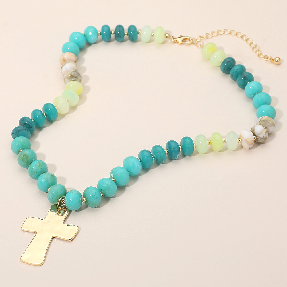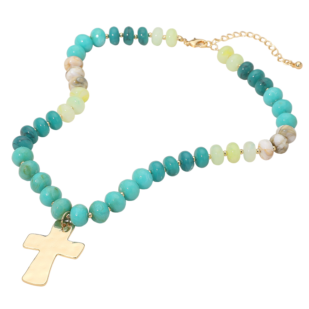 Details • Necklace Size : 18" + 3" L • Decor Size : 0.4" L • Pendant Size : 1.25" X 1.75" • Express timeless style with this beaded necklace featuring smooth multitone beads and a bold cross pendant. Ideal for layering or wearing as a statement piece, it’s perfect for both casual and special occasions, adding meaning and elegance to any look. • Gold Dipped • Lead and Nickel Compliant