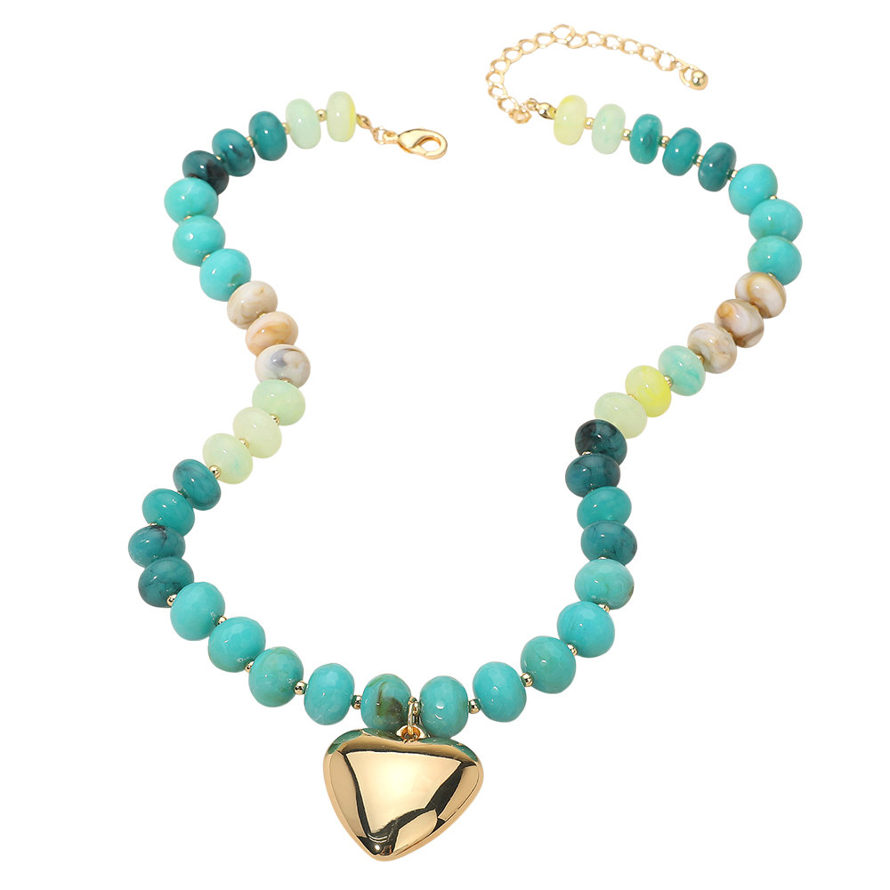 18K Gold Dipped Puffy Heart Pendant Chunky Resin Disc Beaded Necklace 18K Gold Dipped Puffy Heart Pendant Chunky Resin Disc Beaded Necklace