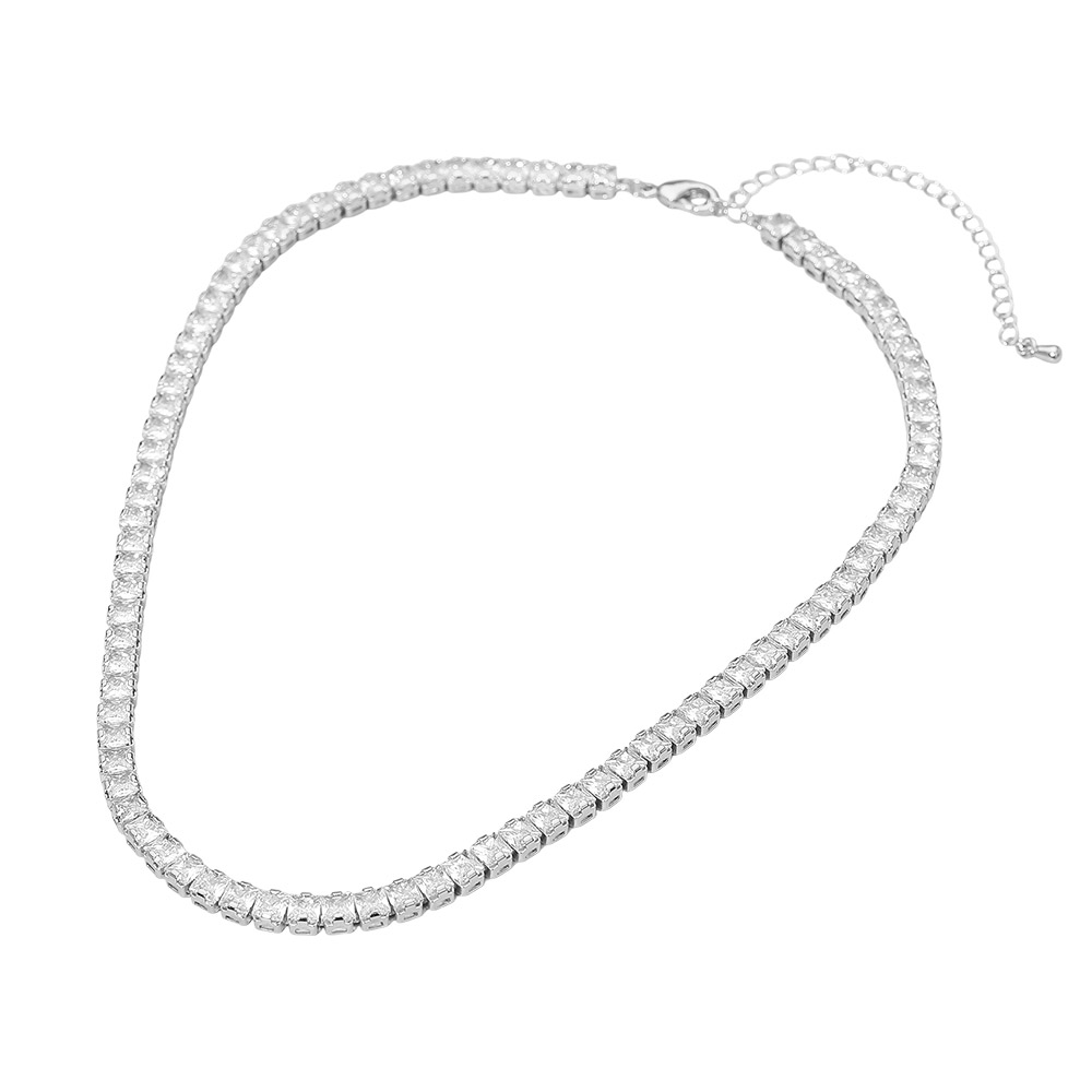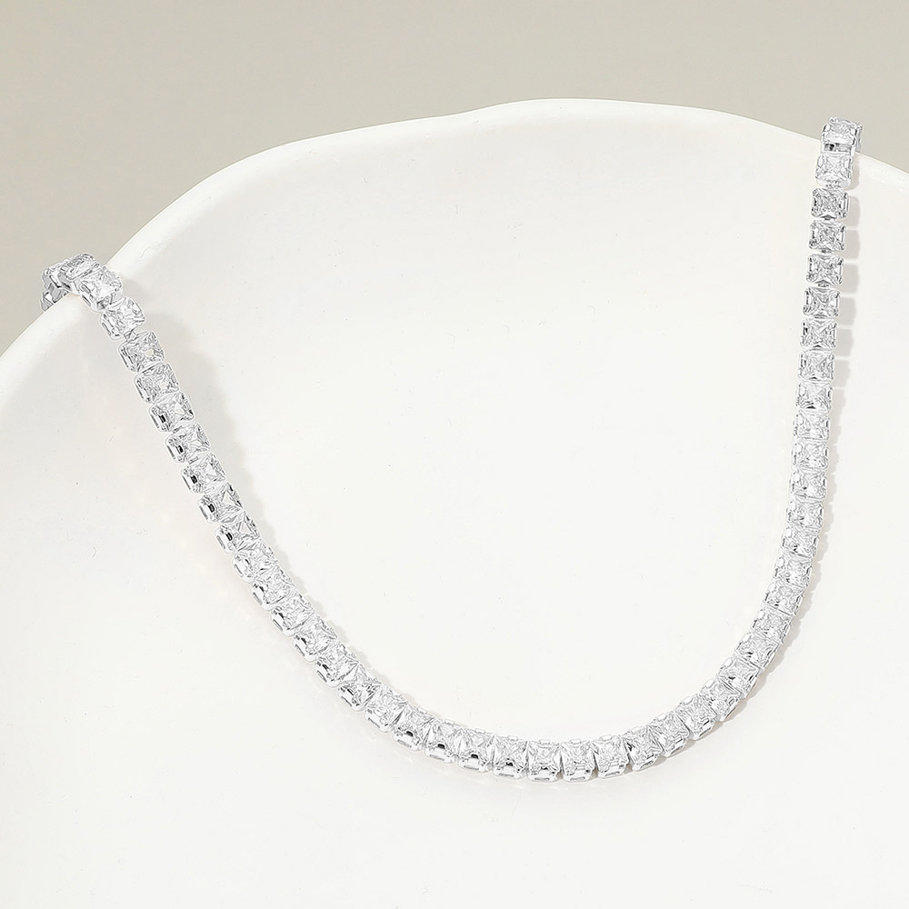 • Contemporary tennis necklace adorned with square-cut crystals for a bold and elegant sparkle. Perfect for layering or wearing solo, it complements both casual and formal looks. A refined jewelry piece that adds luxury, brilliance, and timeless sophistication to any style.