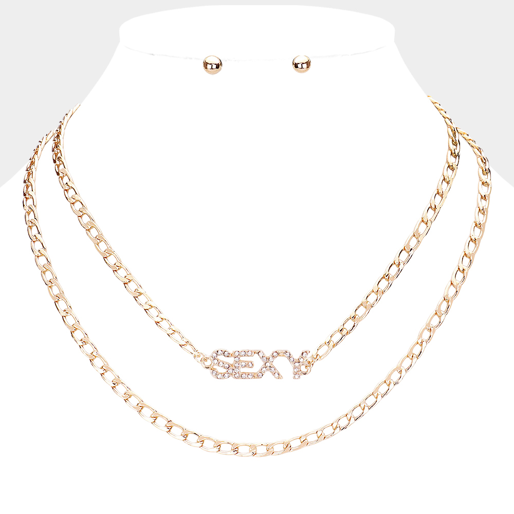 2PCS - SEXY Rhinestone Embellished Pendant Message Necklaces