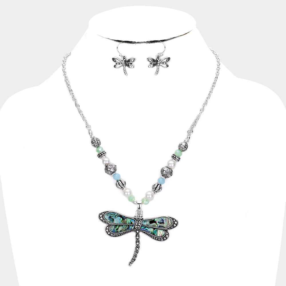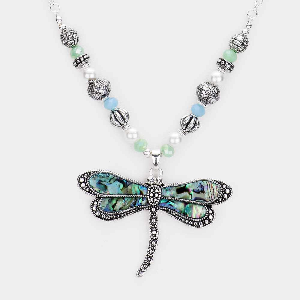Stone Paved Abalone Sea Glass Dolphin Pendant Necklace