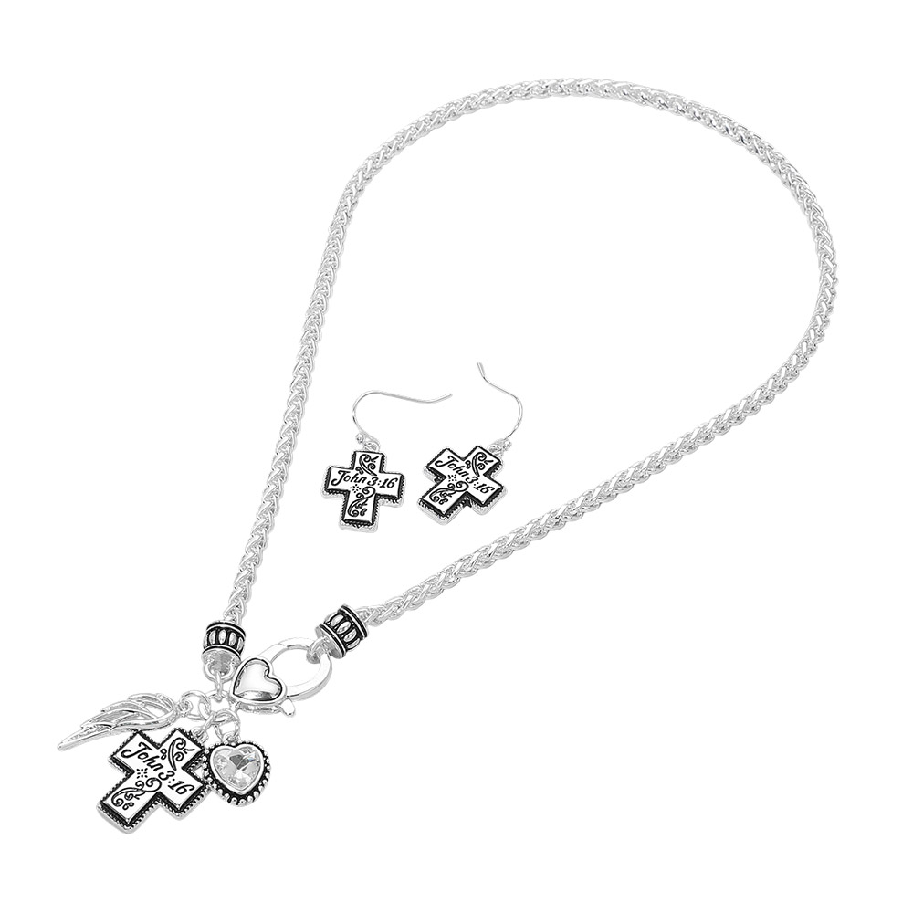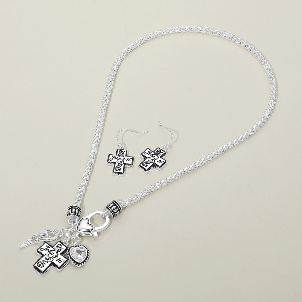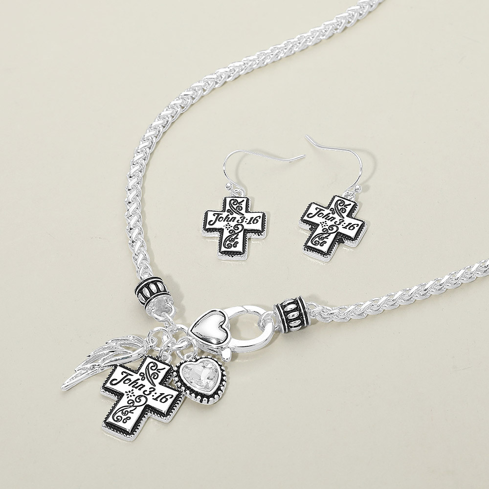 • This cross charm necklace and earring set features meaningful faith-inspired details with a coordinated pendant and matching drop earrings. Designed for everyday wear or special occasions, it makes a thoughtful gift for spiritual celebrations, church events, or personal expression while offering timeless, versatile styling.