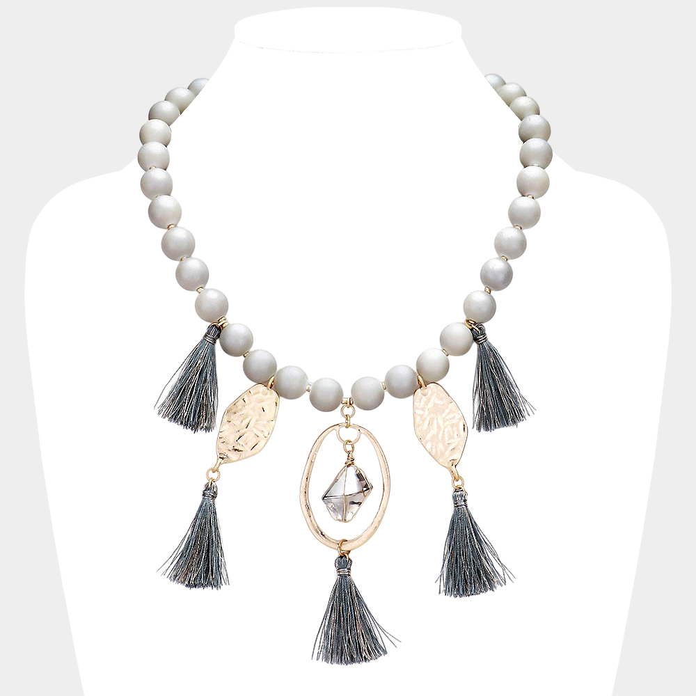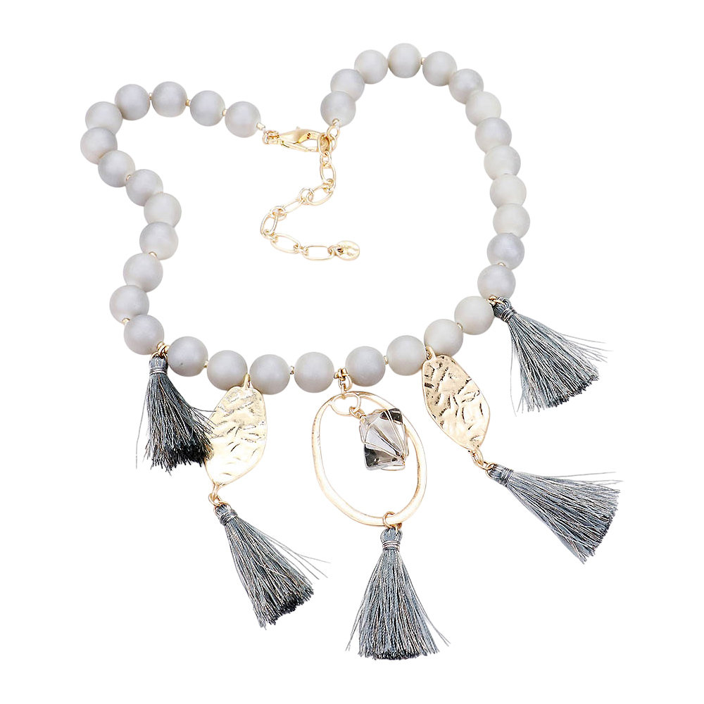 Open Metal Oval Link Resin Beaded Double Layered Bib Necklace