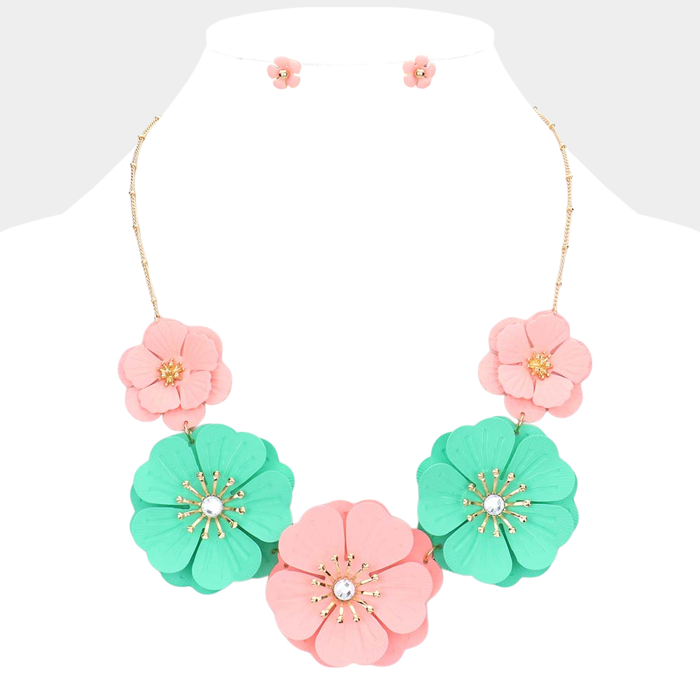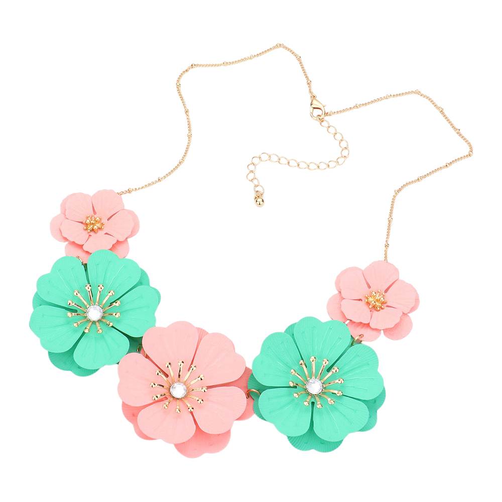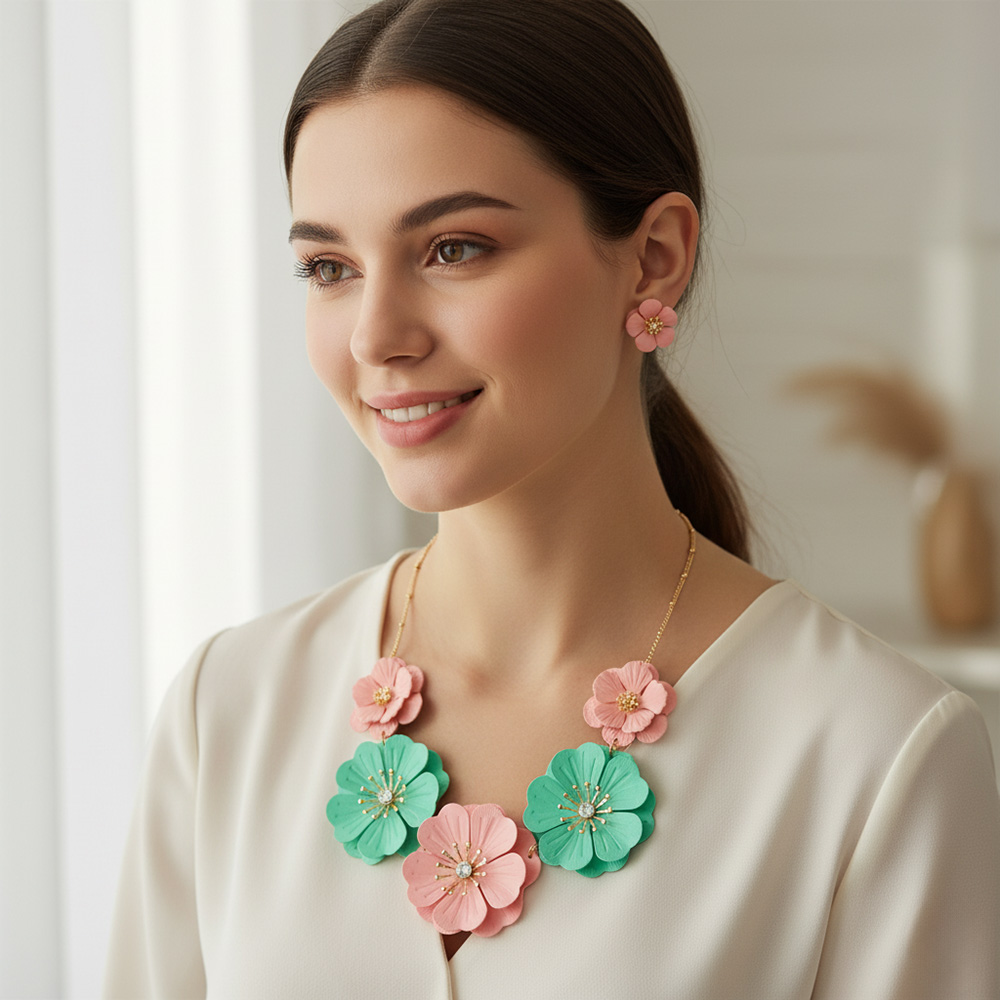 Floral Pearl Detailed Romantic Heart Pendant Necklace