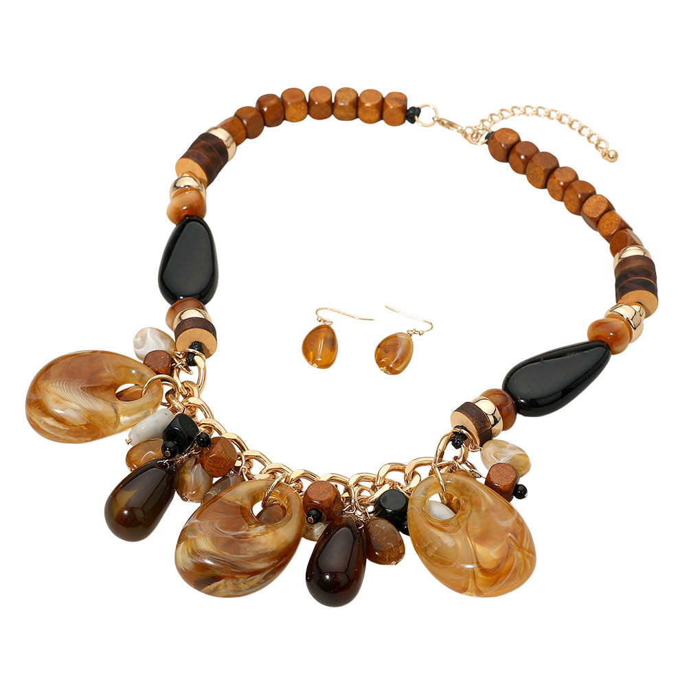 Details • Necklace Size : 22" + 3" L • Decor Size : 2.4" L • Earrings Size : 1.25" L • This bold pendant beaded necklace with matching earrings adds a boho-chic touch to any outfit. Featuring mixed beads, layered drops, and gold-tone accents, this statement jewelry set is perfect for elevating both casual and dressy styles with earthy elegance and artistic flair. • Lead and Nickel Compliant