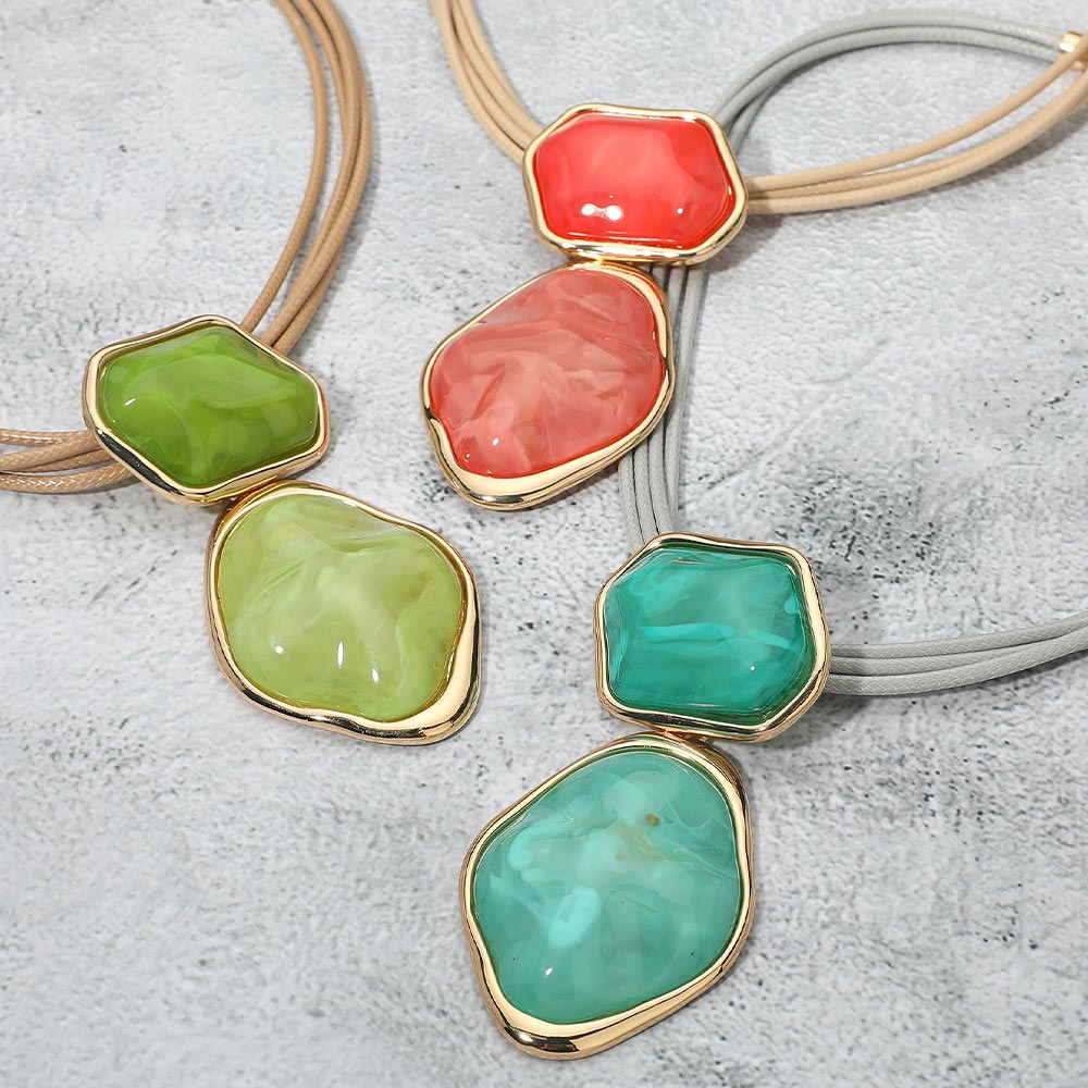 Bold Abstract Double Resin Link Pendant Statement Necklace