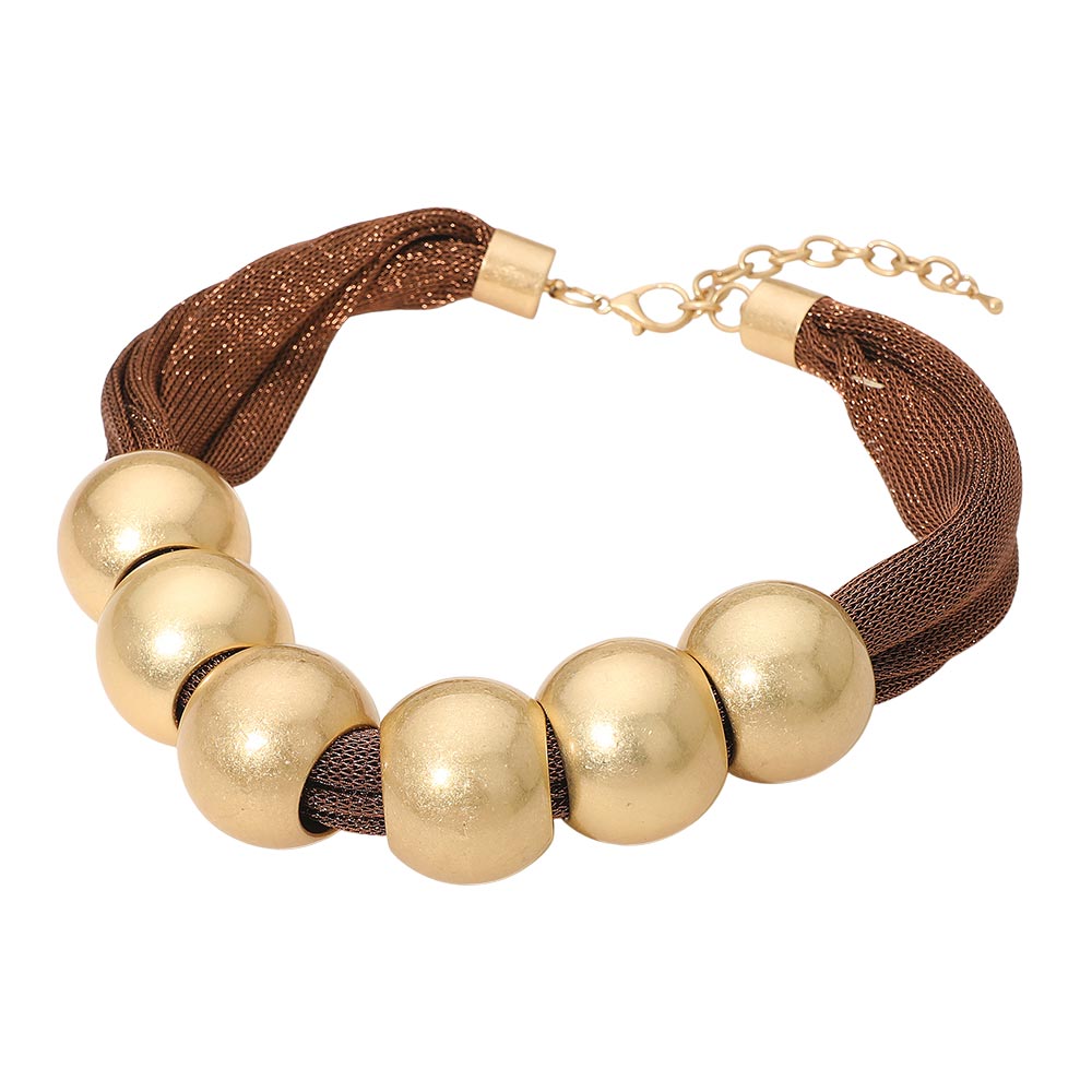 Bold Ball Beaded Mesh Chain Statement Necklace