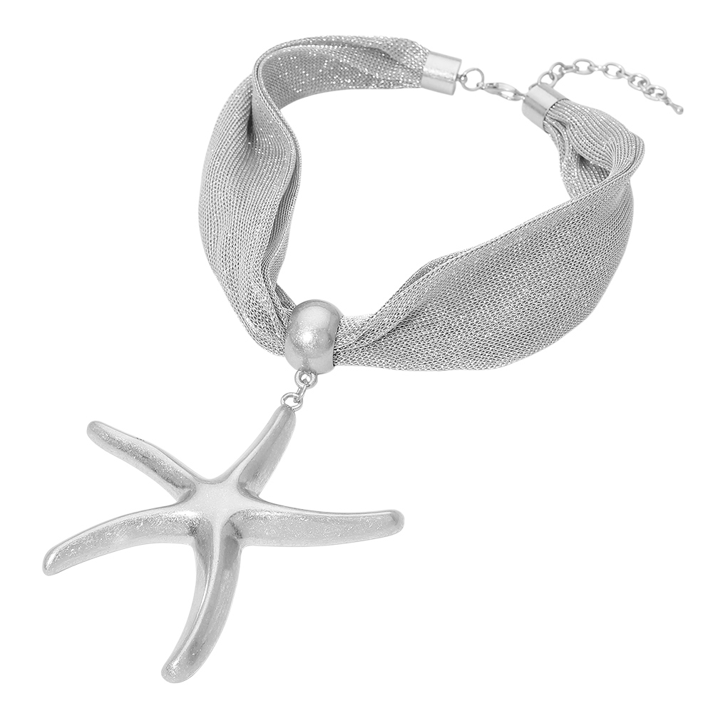 Bold Brushed Metal Starfish Pendant Mesh Statement Necklace