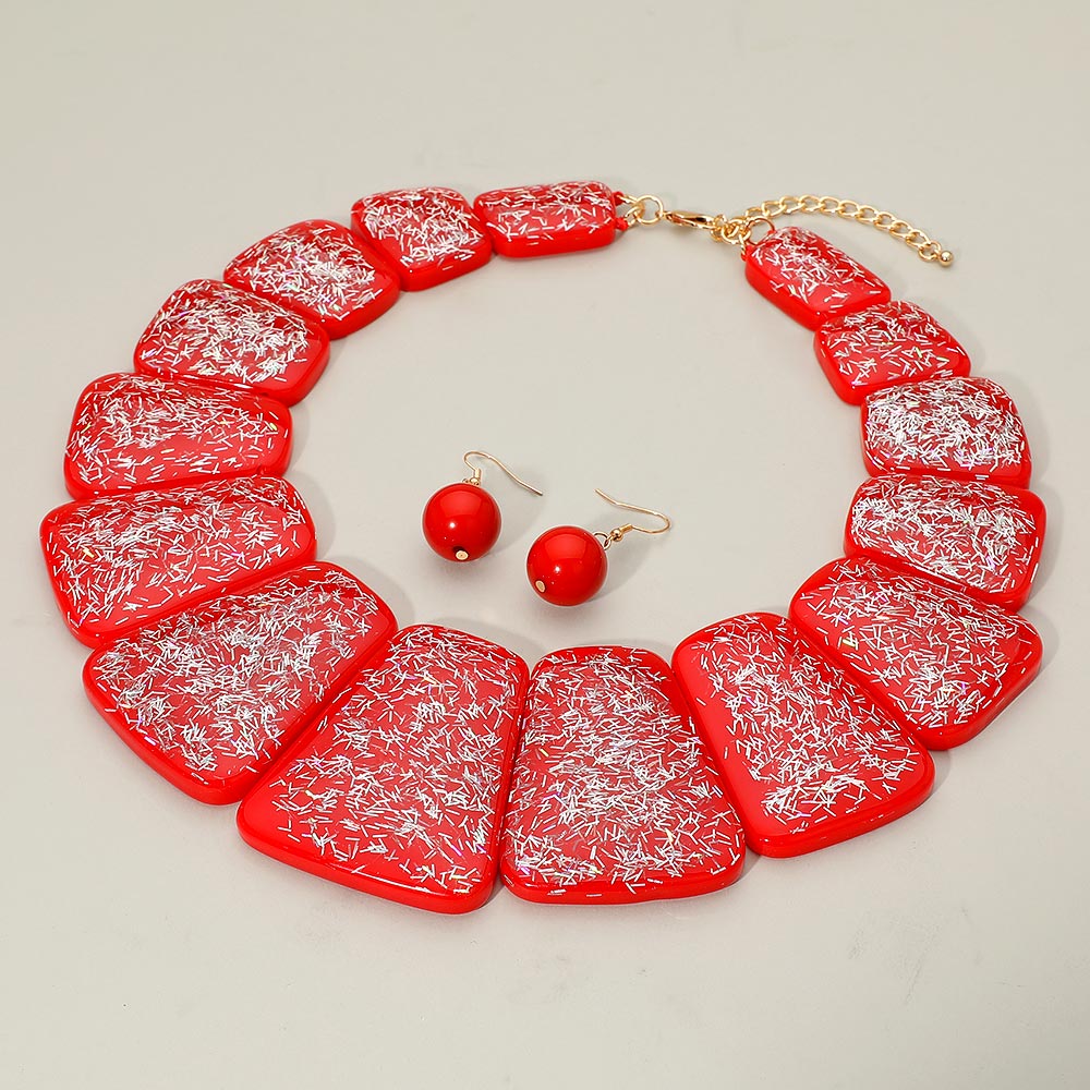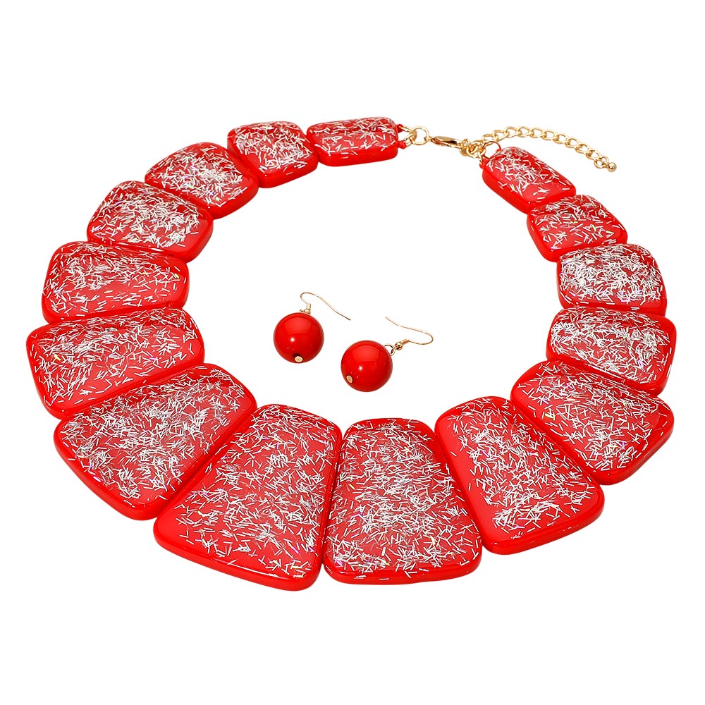Bold Confetti Resin Panel Link Statement Necklace