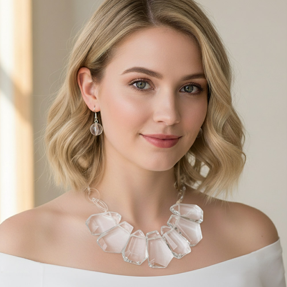 Bold Geometric Resin Pebble Statement Necklace