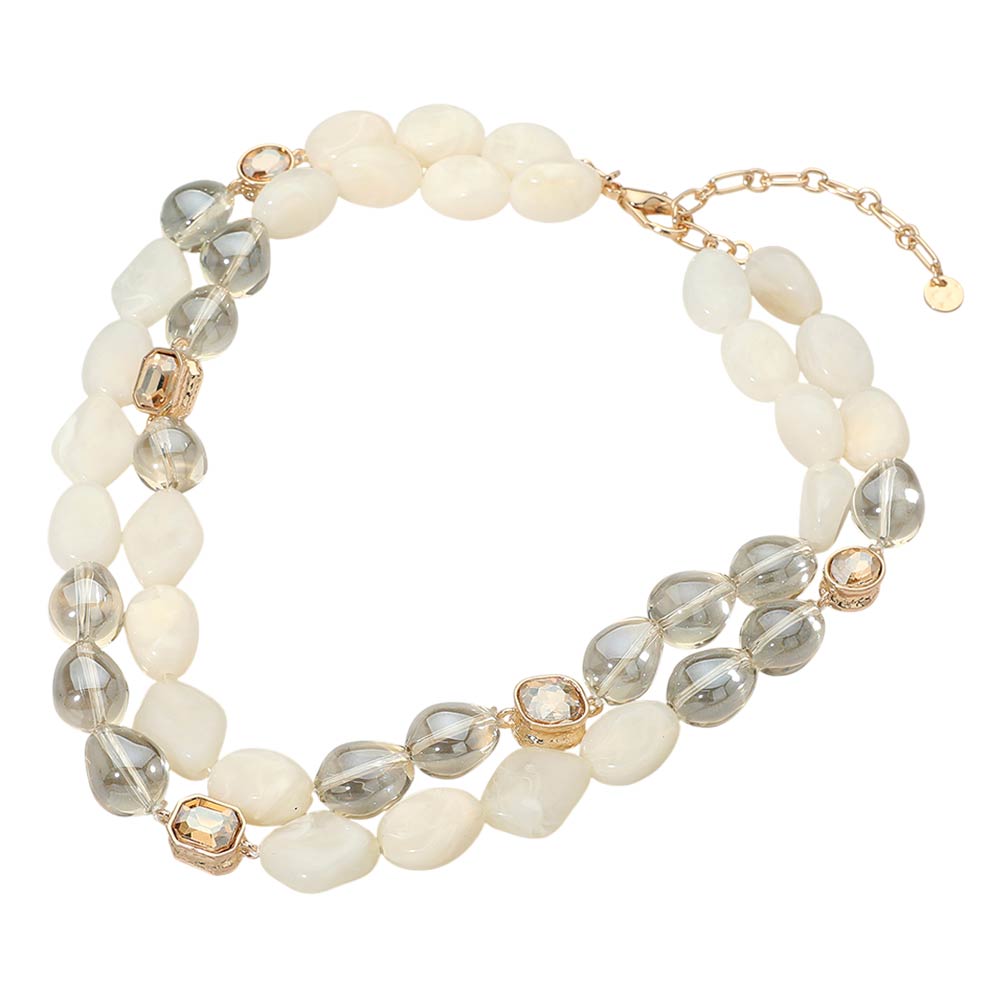 Details • Necklace Size : 17.5" + 3.75" L • Decor Size : 1.4" L • Elegant layered necklace featuring smooth bead strands with faceted accent details and an adjustable extension chain for a comfortable fit. The layered silhouette adds depth and visual interest, making it ideal for everyday styling or elevated looks. Designed to pair effortlessly with casual outfits, workwear, or evening ensembles, this versatile necklace brings a refined yet modern touch to any jewelry collection. • Lead and Nickel Compliant