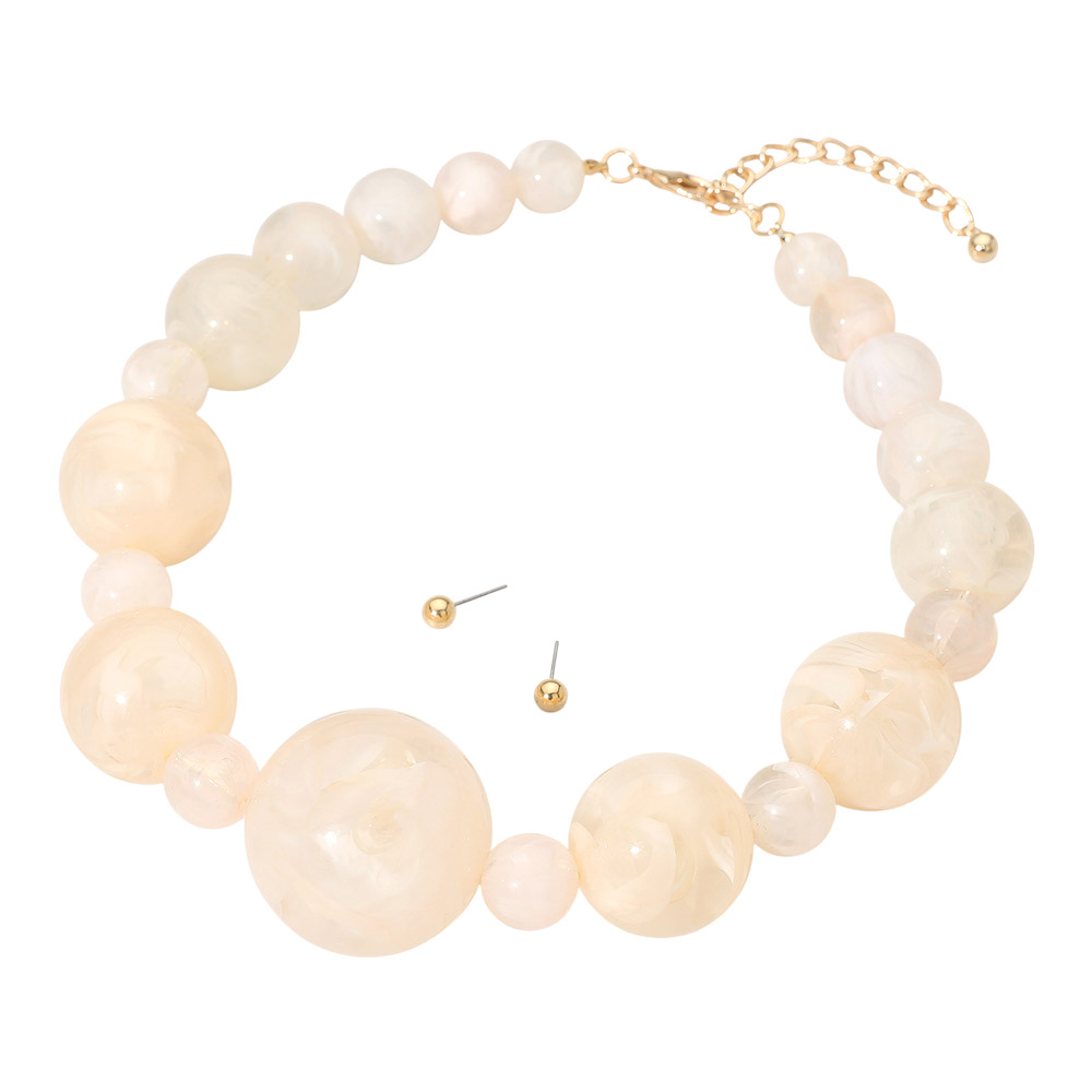 Bold Marbled Resin Ball Beaded Statement Necklace